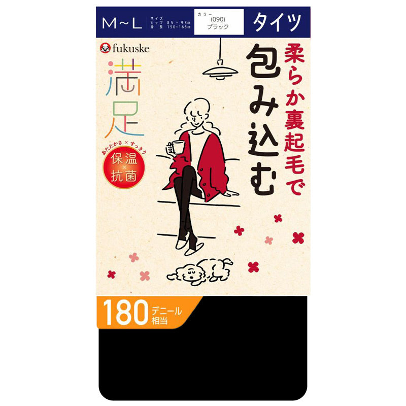 タイツ 裏起毛 福助 厚手 満足 180デニール M-L
