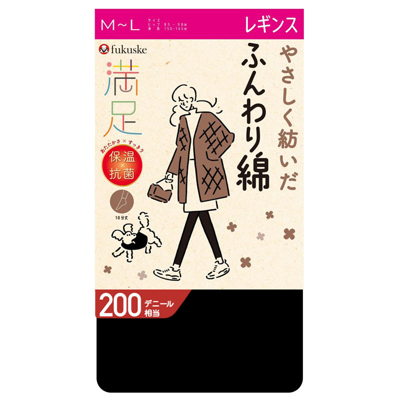 レギンス レディース 綿混 厚手 10分丈 福助 満足 200デニール M-L L-LL スパッツ 暖かい 冬 防寒 綿 日本製 マチ 黒 保温 抗菌 防臭 あったかい あたたかい (在庫限り)