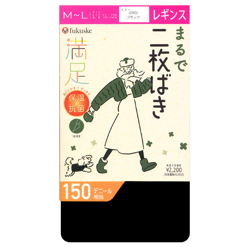 レギンス 10分丈 レディース 冬 150デニール まるで2枚履き 福助 満足 M-L L-LL 黒 暖かい あったか 保温 あたたかい 防寒