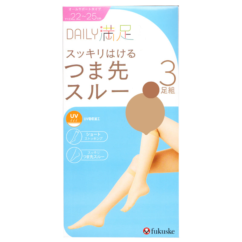 福助 ショート ストッキング 膝下 つま先スルー 3足組 22-25cm