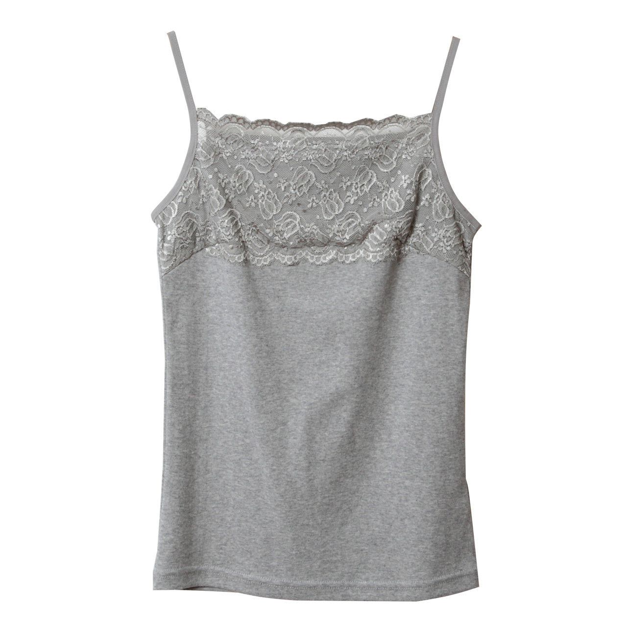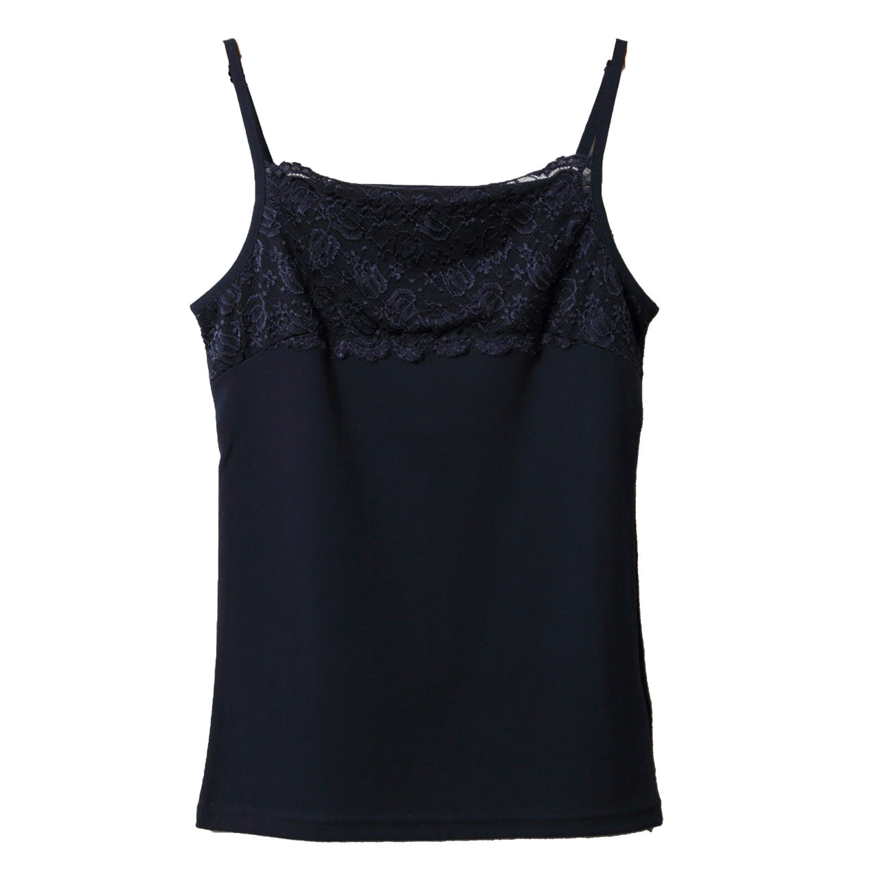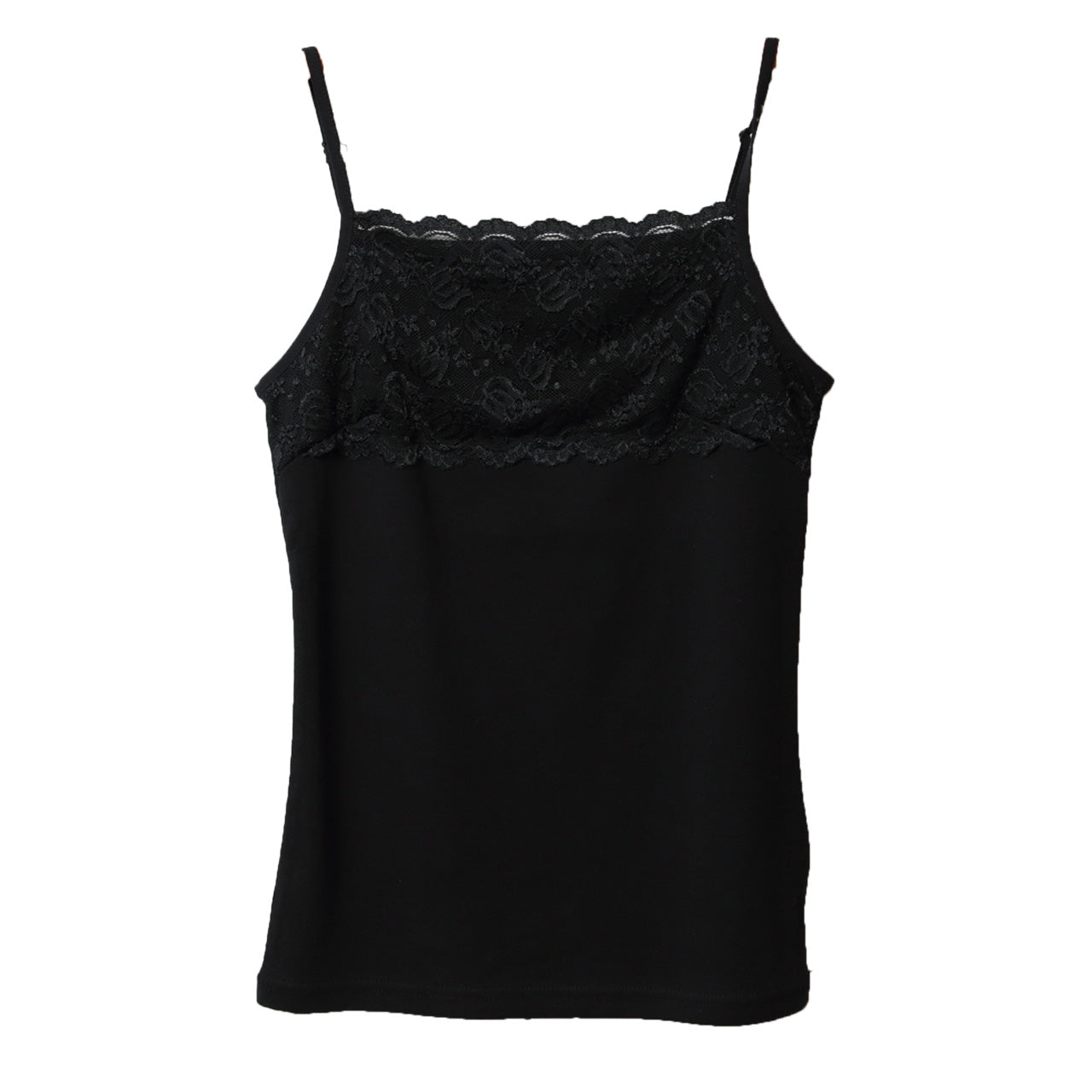 キャミソール レディース トップス レース M~LL (胸元レース キャミ 綿 無地 見せる インナー コットン)