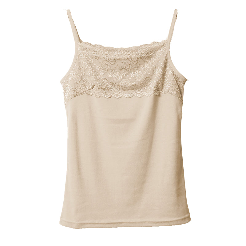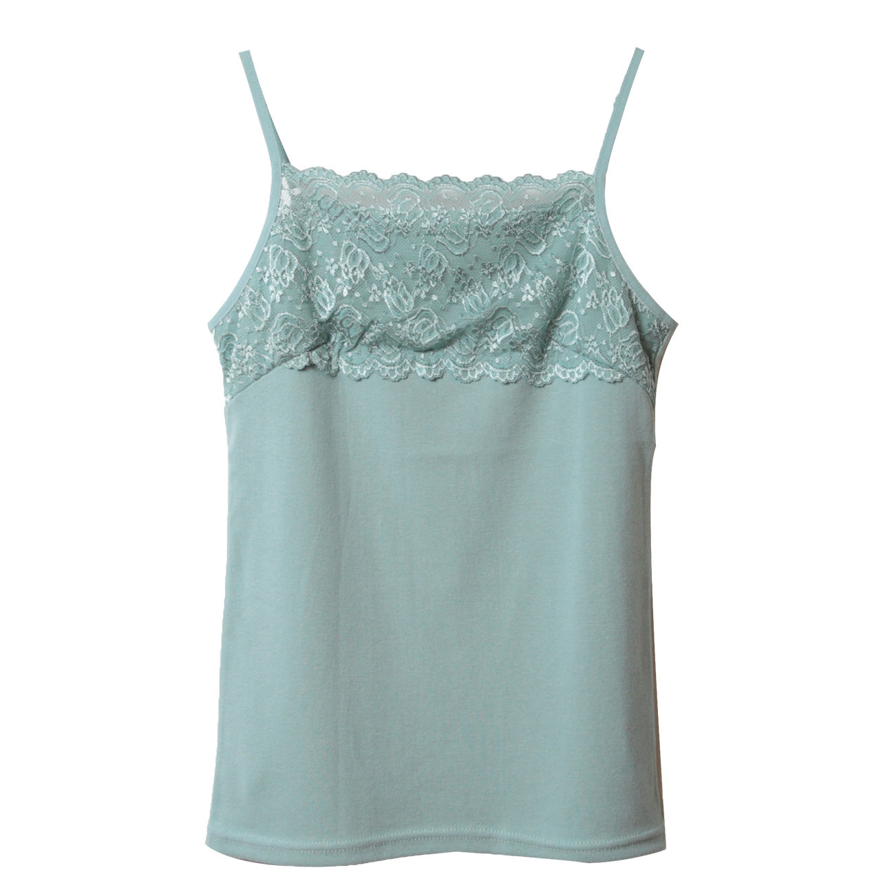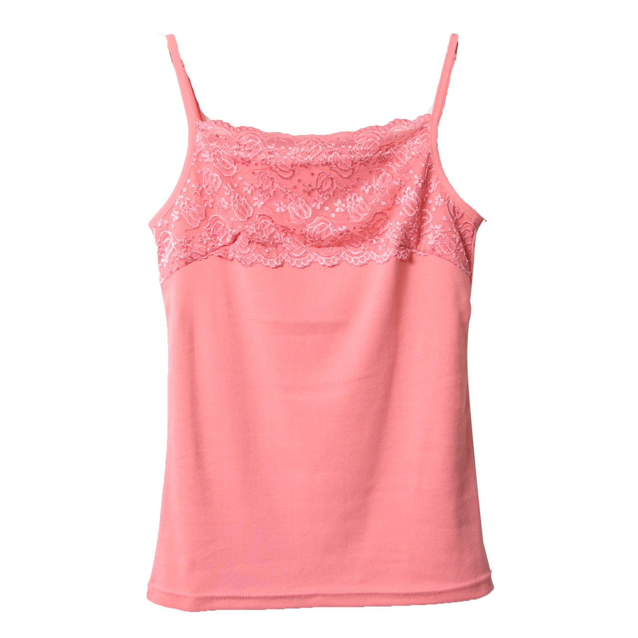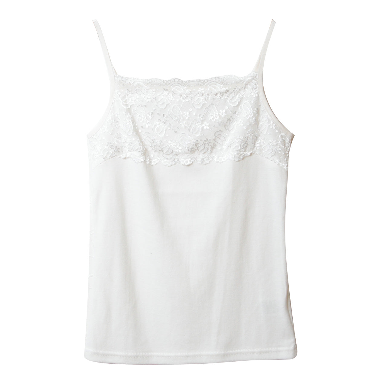 キャミソール レディース トップス レース M~LL (胸元レース キャミ 綿 無地 見せる インナー コットン)