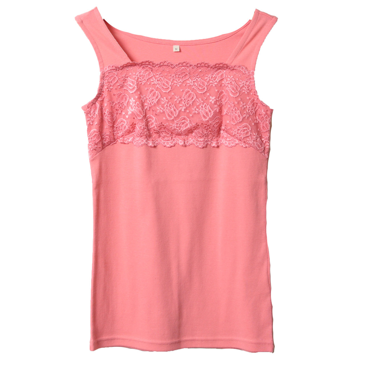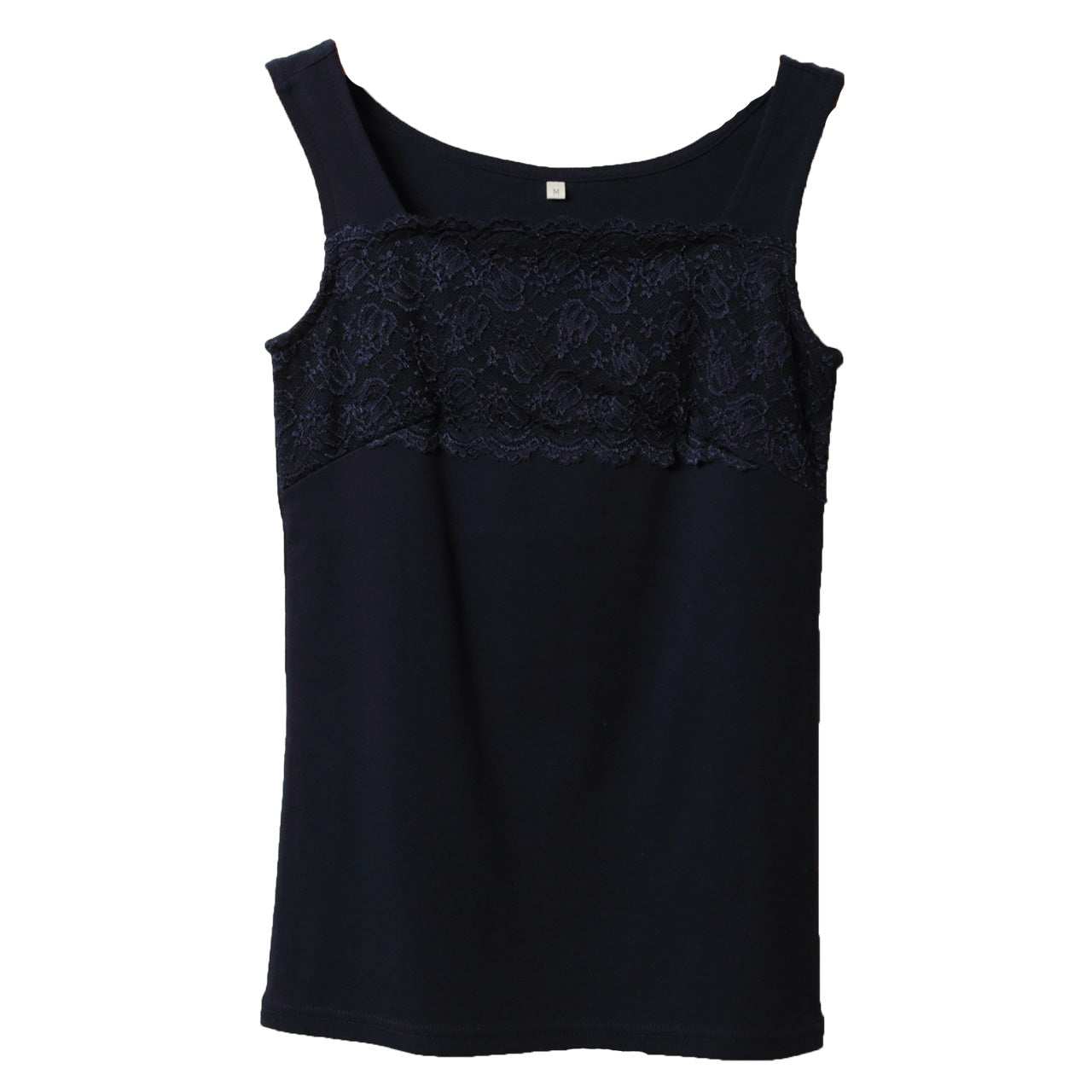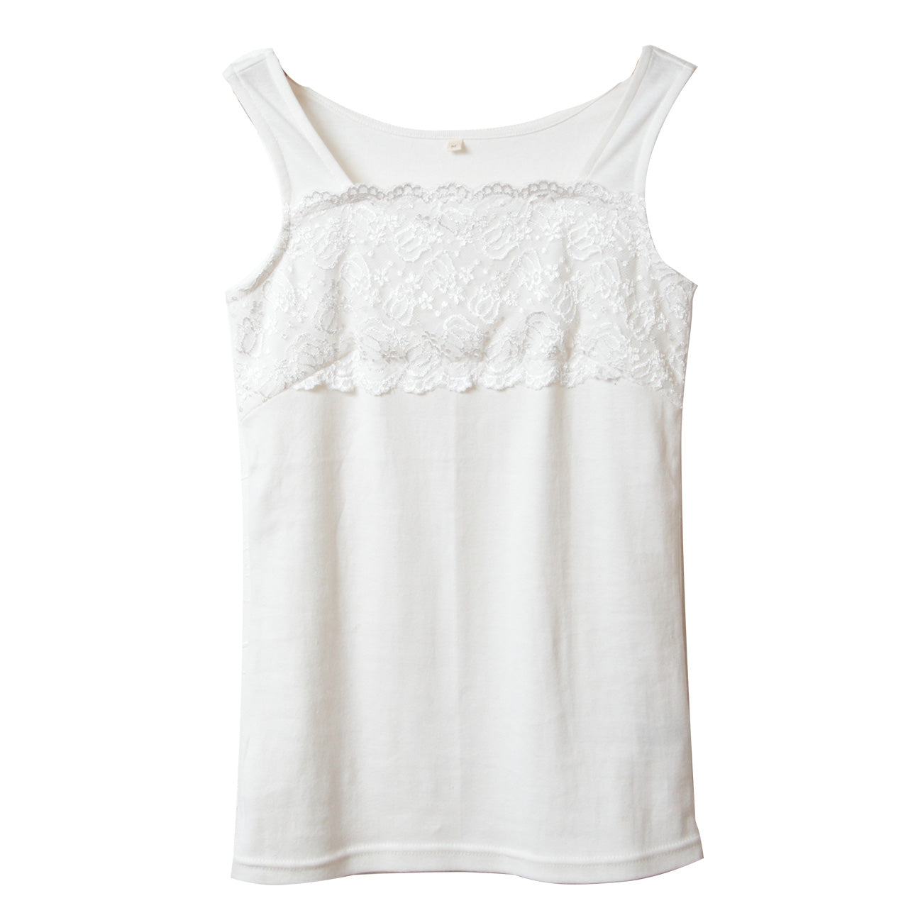 タンクトップ レディース レース トップス インナー M~LL 胸元レース 綿100% コットン ノースリーブ 無地 見せる カットソー タンク 女性 婦人