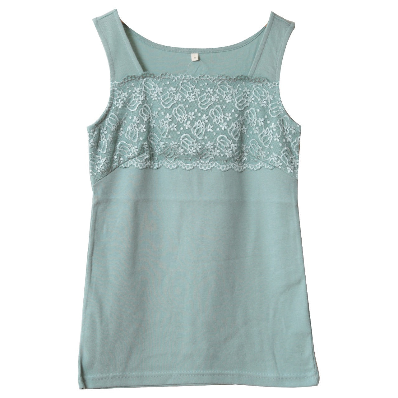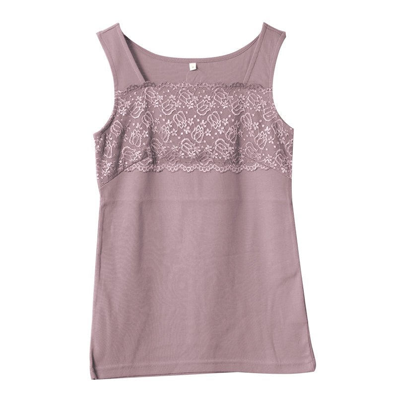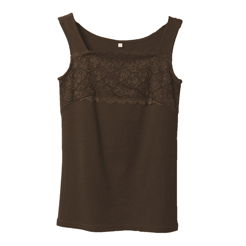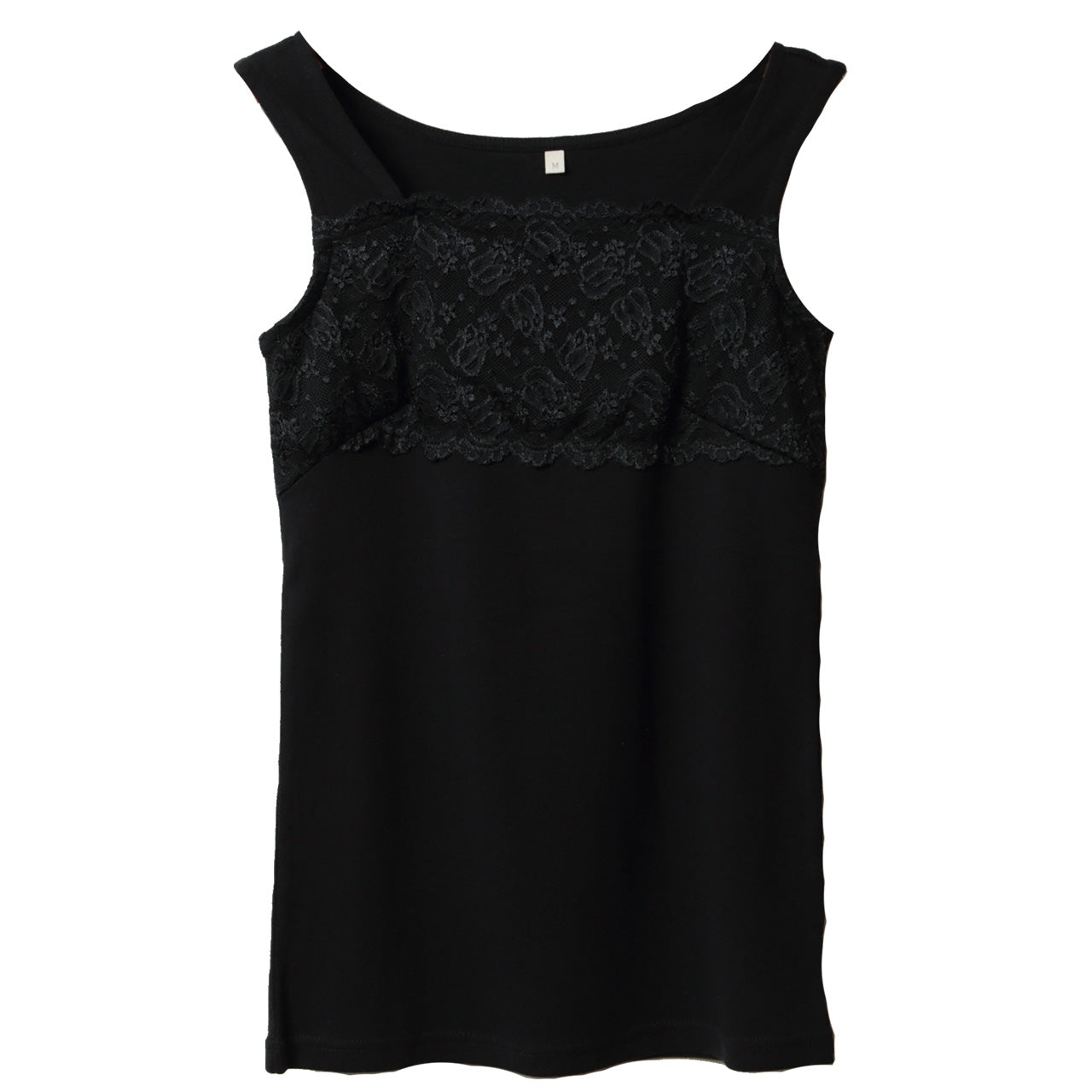 タンクトップ レディース レース トップス インナー M~LL 胸元レース 綿100% コットン ノースリーブ 無地 見せる カットソー タンク 女性 婦人