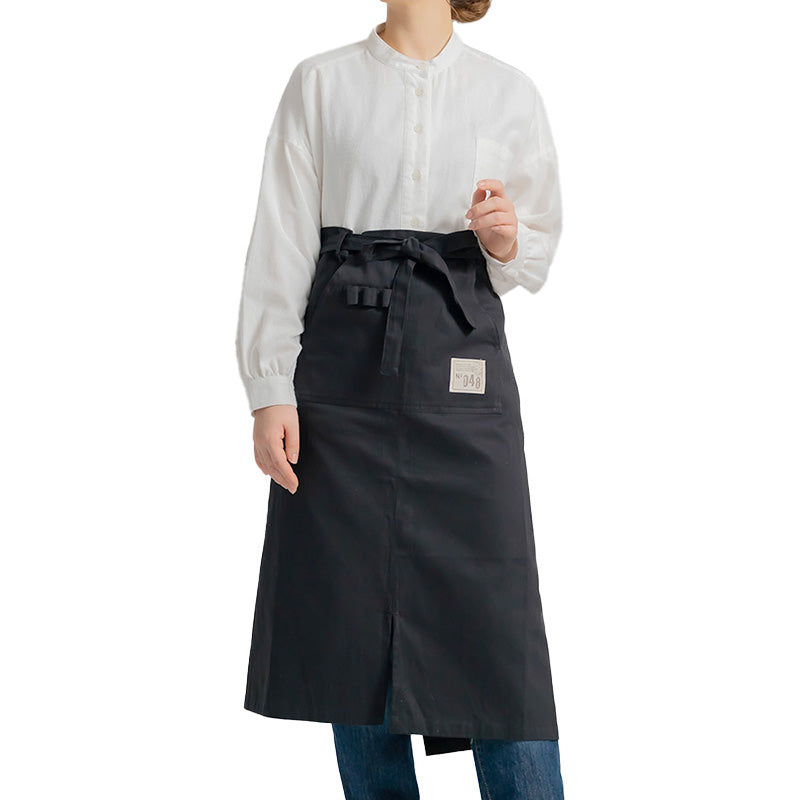 また、裾には長めのスリット(切れ込み)が入っており、ロング丈のエプロンでも動きやすい♪
