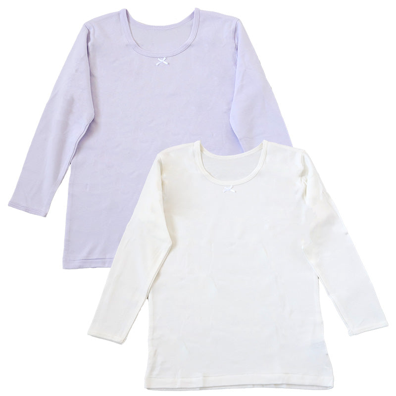 子供 女の子 厚手 綿100% インナー 8分袖 長袖 シャツ 2枚組 冬 100cm~160cm 下着 肌着 厚地 女児 子ども キッズ ジュニア 無地 シンプル セット 2P コットン 白 紫 黒