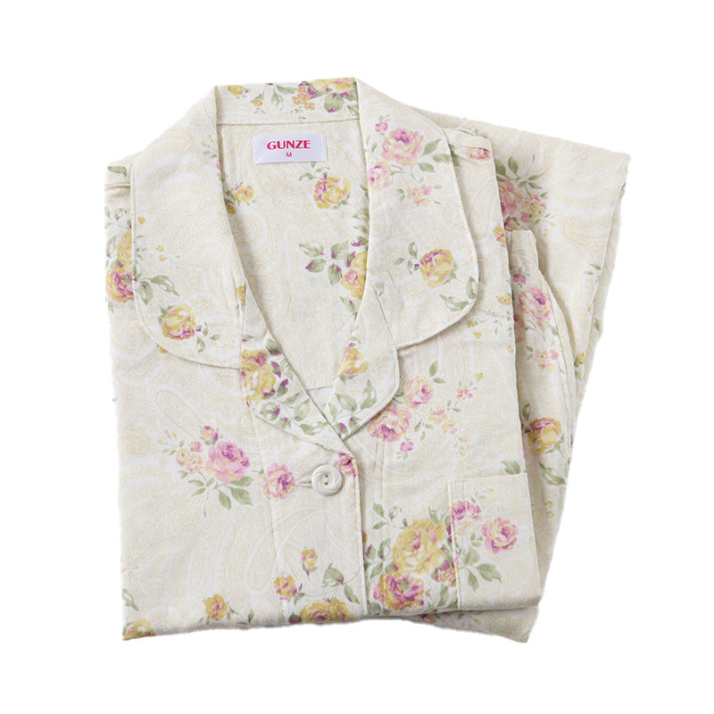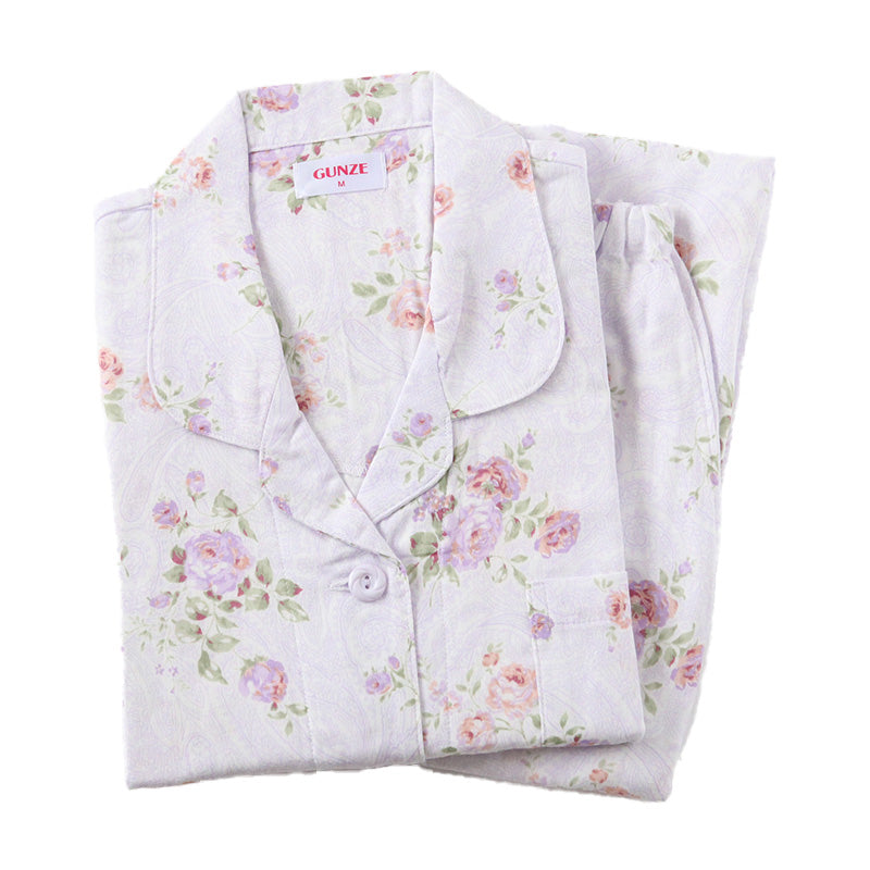 グンゼ パジャマ 保湿なめらか 婦人 長袖長パンツ パジャマ S~3L (綿100% 小さいサイズ 大きいサイズ 花柄 S M L LL 春 夏) (送料無料) (在庫限り)