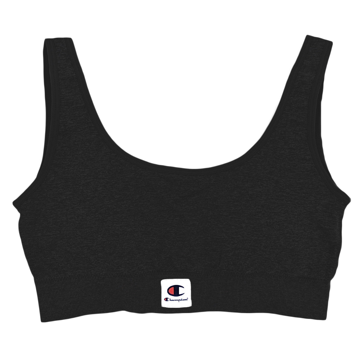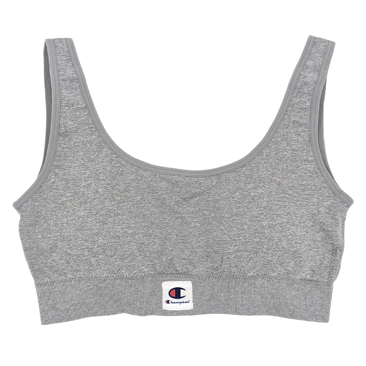 チャンピオン レディース スポーツブラ ソフトブラ シームレス 普段使い パッド カップ ヨガ ローバック グレー 黒 M・L (champion M L ワイヤーなし 縫い目なし 婦人 女性 セットアップ スポーツウェア) (在庫限り)