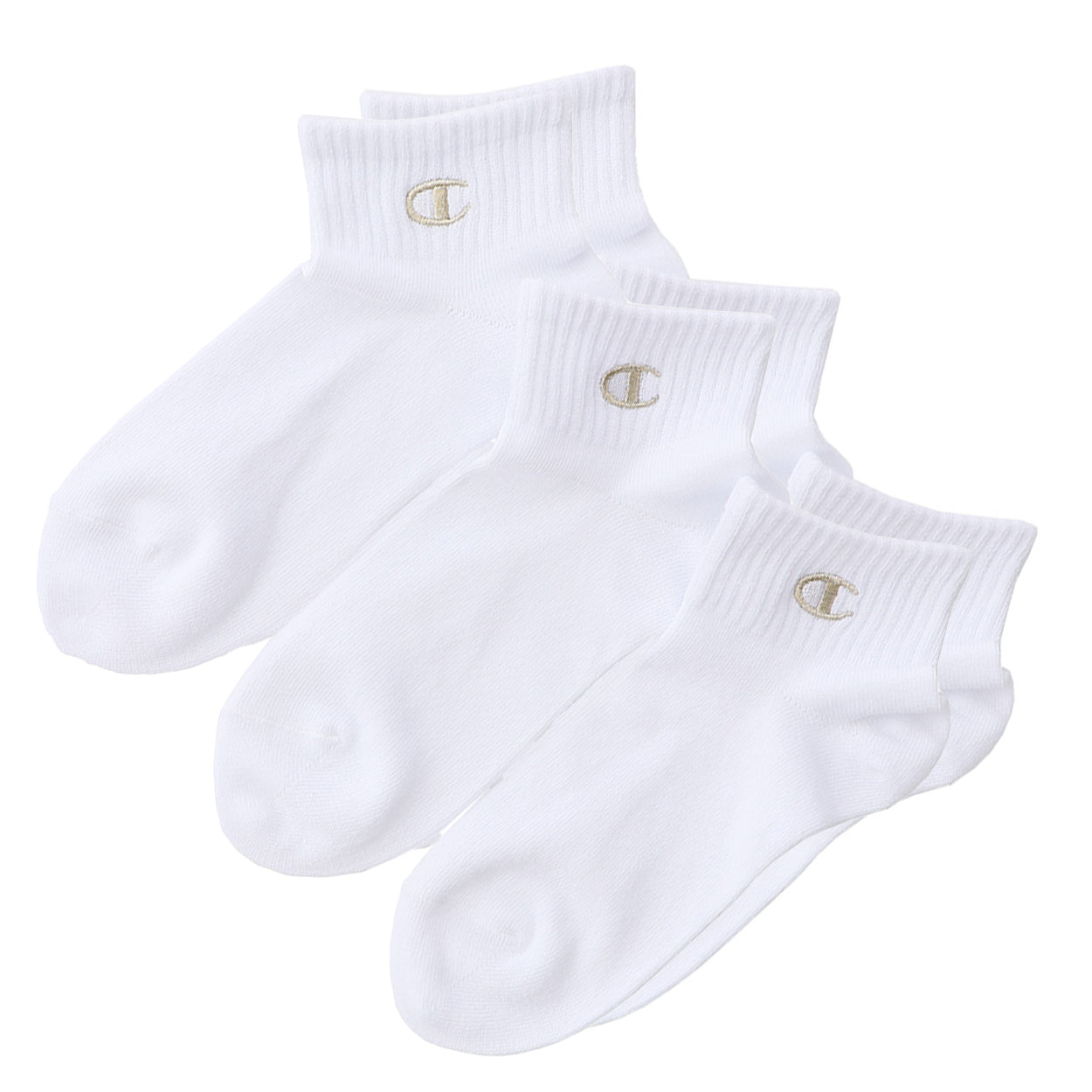 スポーツアパレルの人気ブランド、チャンピオンのクルー丈靴下の3足セット。