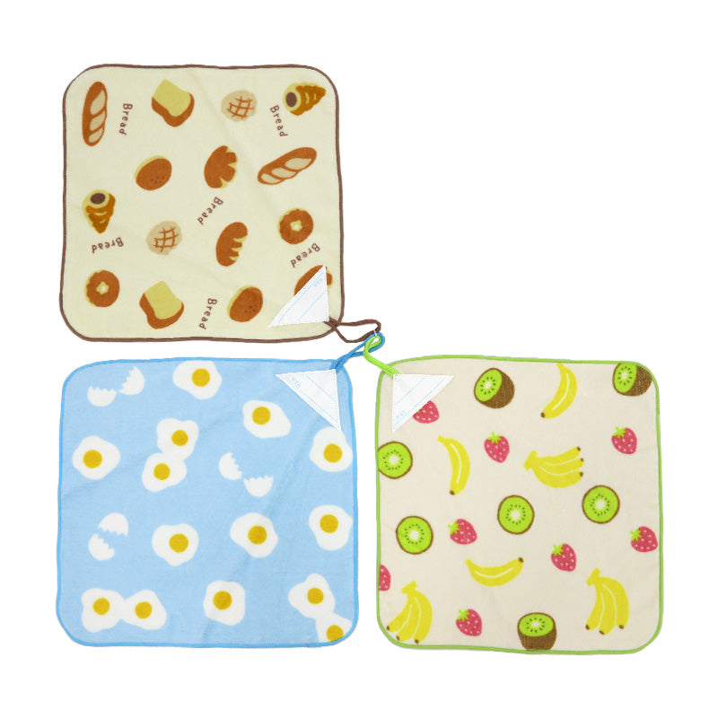 保育園用ループタオル/ネーム付き/保育所/園児/カラータオル/ハンドタオル/カラーハンカチ/ネーム付きハンカチ/綿/綿素材/コットン/コットン素材/動物/アニマル/くだもの/車/電車/ティラノサウルス/トリケラトプス/食べ物/食パン/フランスパン sc-goods-han WN480300 WO459600 WO459700 WO459800 WO459900/HT/hys026