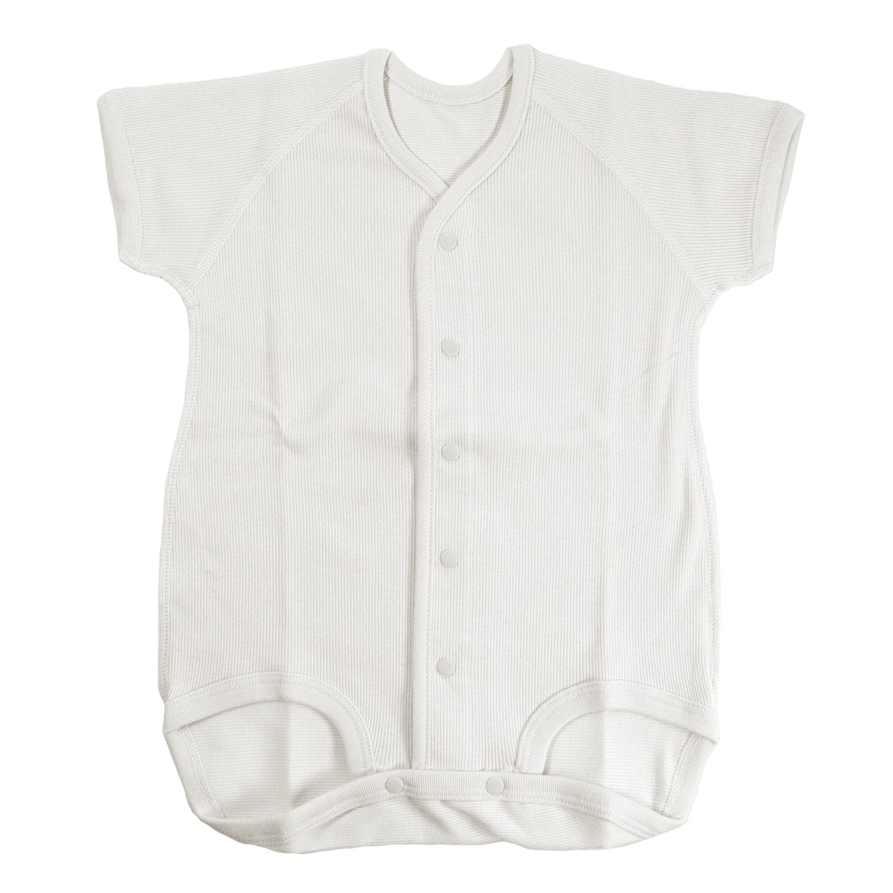安心の日本製!お肌に優しい綿100%の前開き半袖ロンパース(ロンパス肌着/新生児用肌着)です。