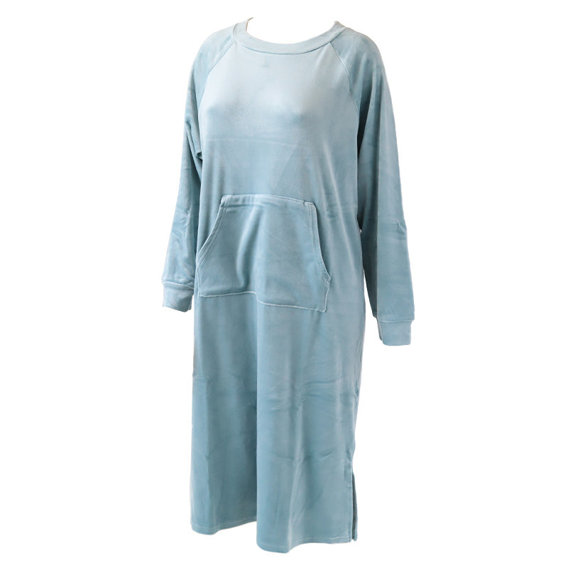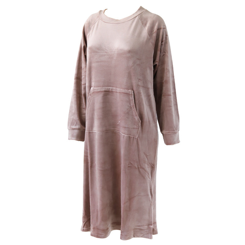 ルームワンピース レディース 秋 冬 パジャマ 薄手 起毛 伸縮性 ルームウエア M L ベロア のびのび 部屋着 くすみ シャギー 女性 婦人 やわらかい 長袖 ポケット