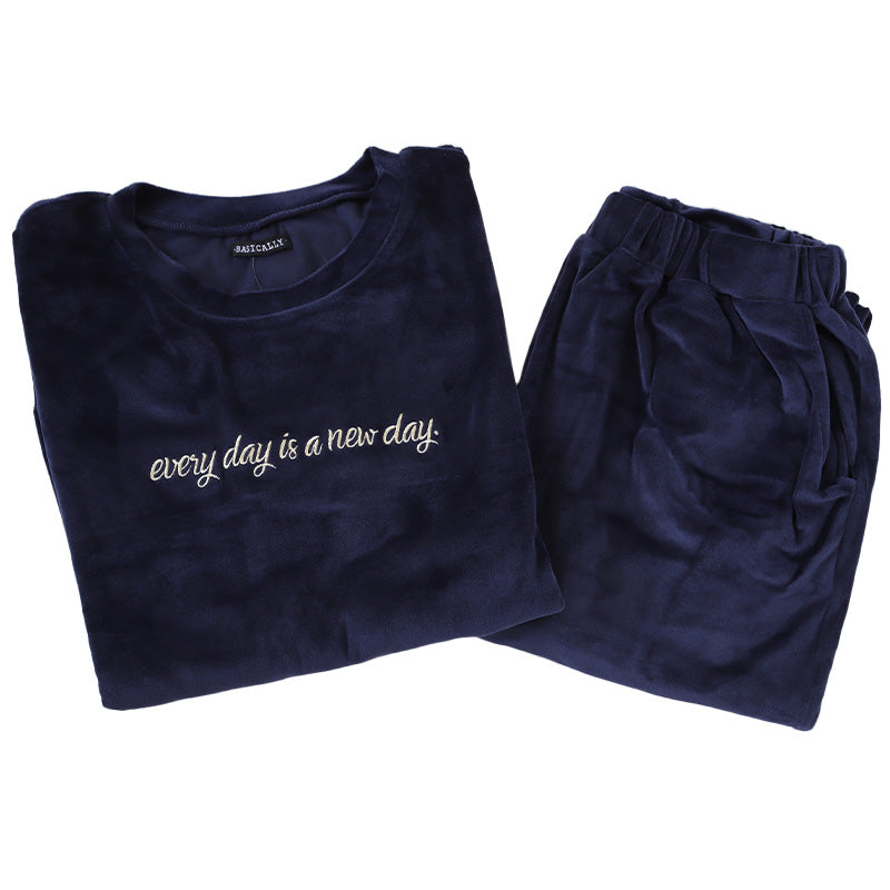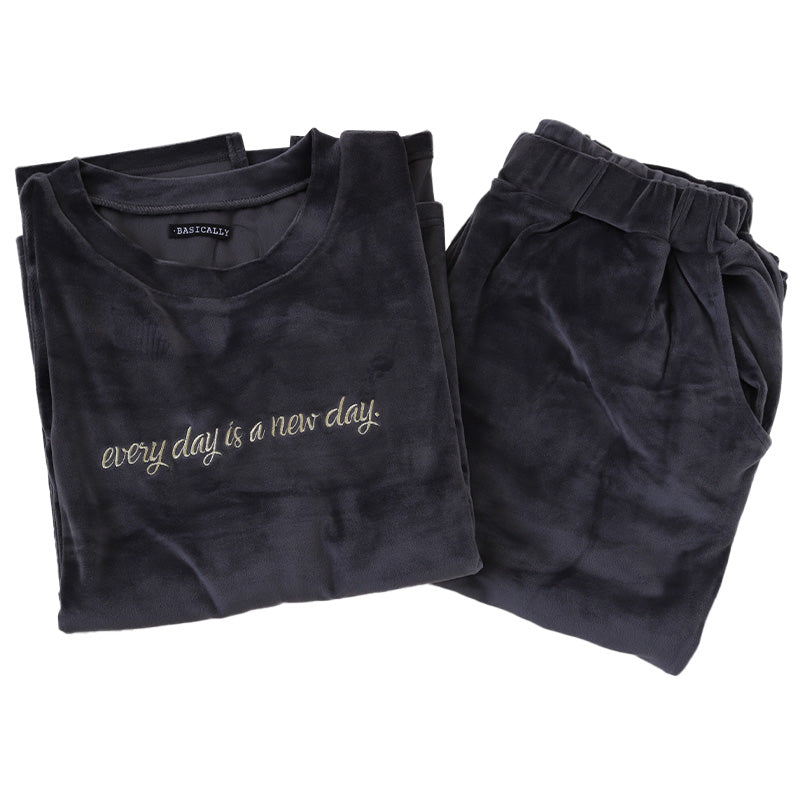 刺繍/ロゴ/あったか/暖かい/あたたかい/柔らか/伸びる/上下セット/くすみカラー/パール/シャギー/ツヤツヤ l-room-win 97357/nt007