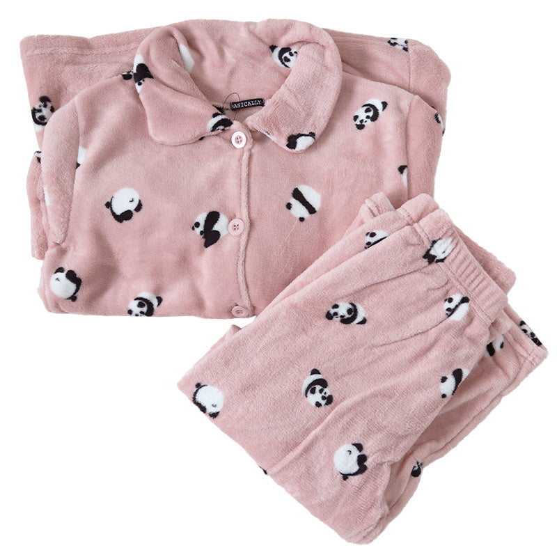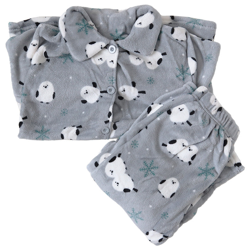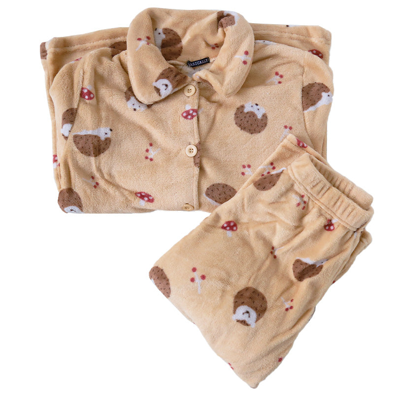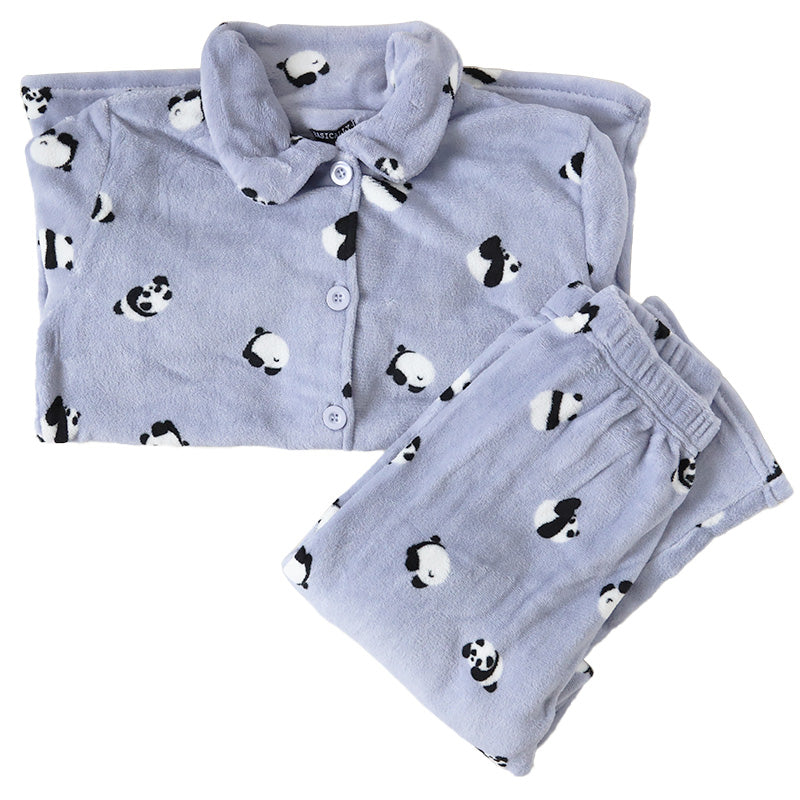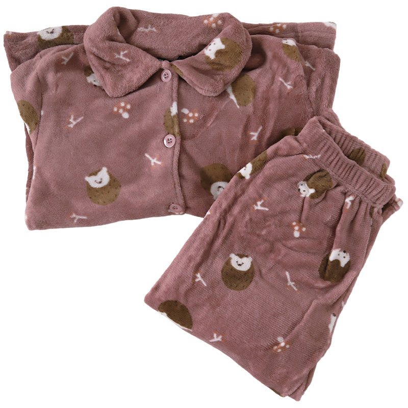 パジャマ レディース 冬 かわいい あったかい ルームウェア 長袖 婦人 前開き 部屋着 M-L やわらかい もこもこ 柄 上下 ボーダー 花柄 シマエナガ クマ ハリネズミ パンダ