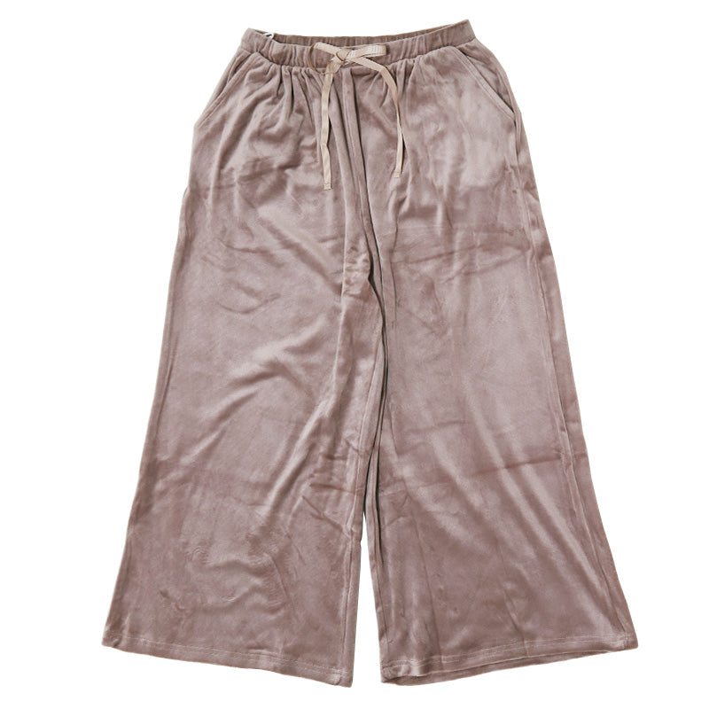 ルームウエア ワイドパンツ レディース 秋 冬 パジャマ 薄手 起毛 伸縮性 M L ベロア のびのび 部屋着 スウェット 女性 婦人 やわらかい 長ズボン 黒 紺 ピンク ベージュ