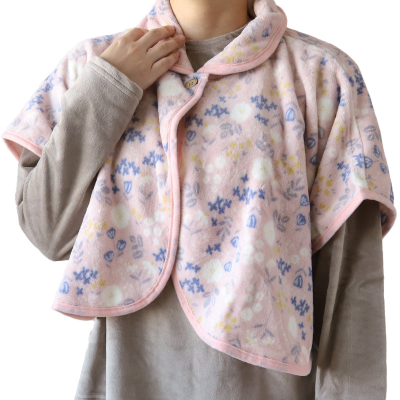 レディース/柄付きポンチョ/パジャマの上に/大人用/女子/ボタン付き/ボタン式/ボタン仕様/総柄/可愛い/かわいい/もこもこ/ふわもこ/やわらかい/柔らかい/あったかい/あたたかい/暖かい/冬用/冬物/寒さ対策/防寒対策/肩こり/肩が凝らない/プレゼント/贈り物 l-room-win 98-8084 98-8086/ORB/ob046
