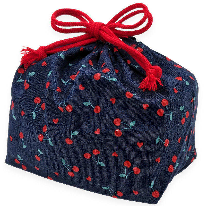 マチ付き巾着タイプだから、二段のランチボックスやデザート入れ、
