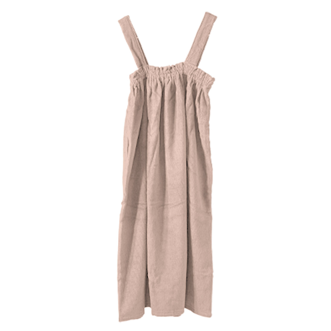 レディース向け、ストラップを肩にかけて着るバスローブです。