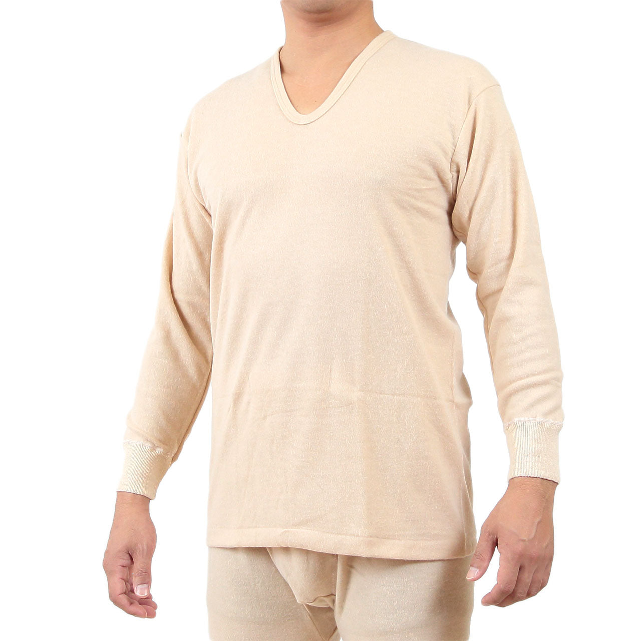紳士 肌着 長袖 インナー カシミヤ入り M・L (メンズ 暖かい 冷え 下着 シャツ Uネック 長袖インナー 遠赤 両面起毛 M L) (在庫限り)