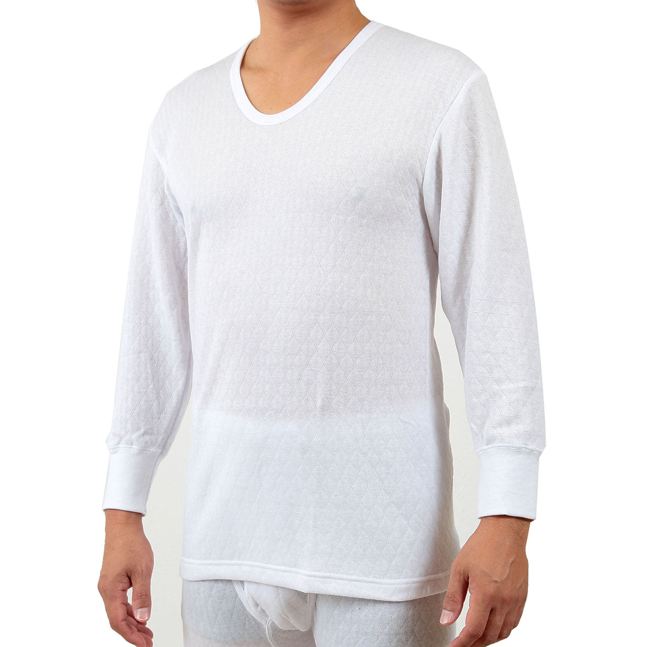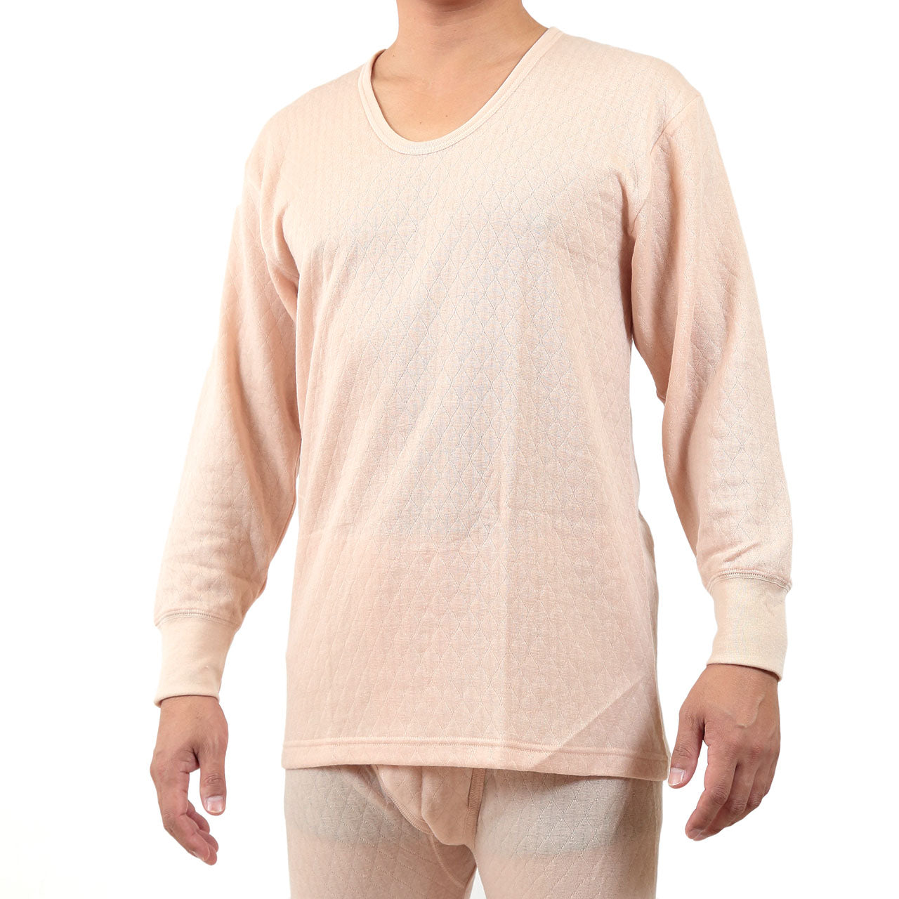 紳士 ニットキルト 長袖 インナー M~LL (メンズ 肌着 下着 Uネック シャツ 暖かい 防寒 M L LL) (在庫限り)