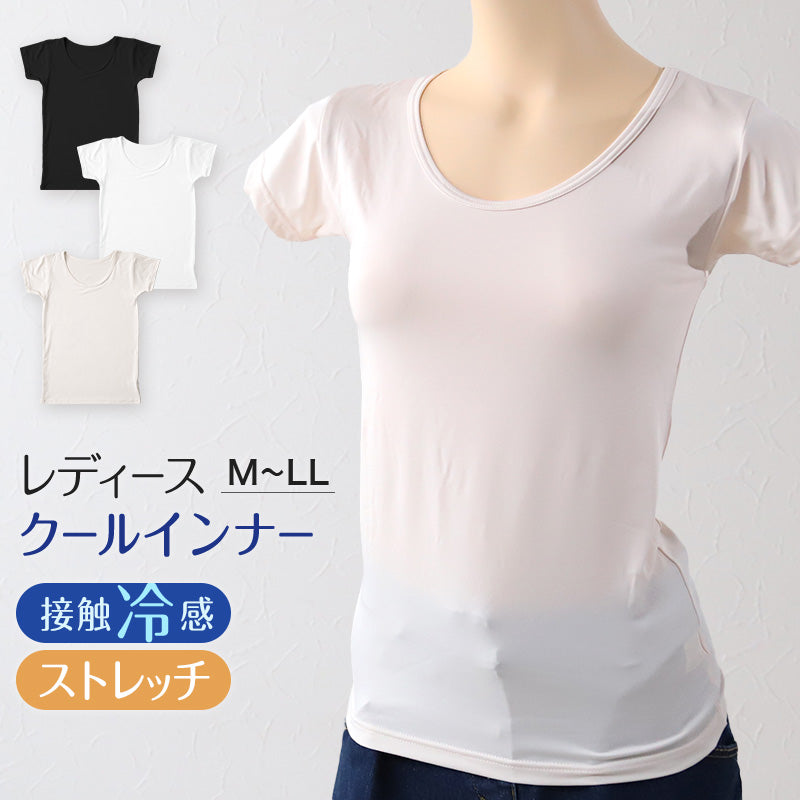 インナー 半袖シャツ 半袖インナー フレンチ袖インナー レディース 冷感 肌着 M~LL 接触冷感 婦人 ベージュ 黒 白 肌色 下着 (在庫限り)
