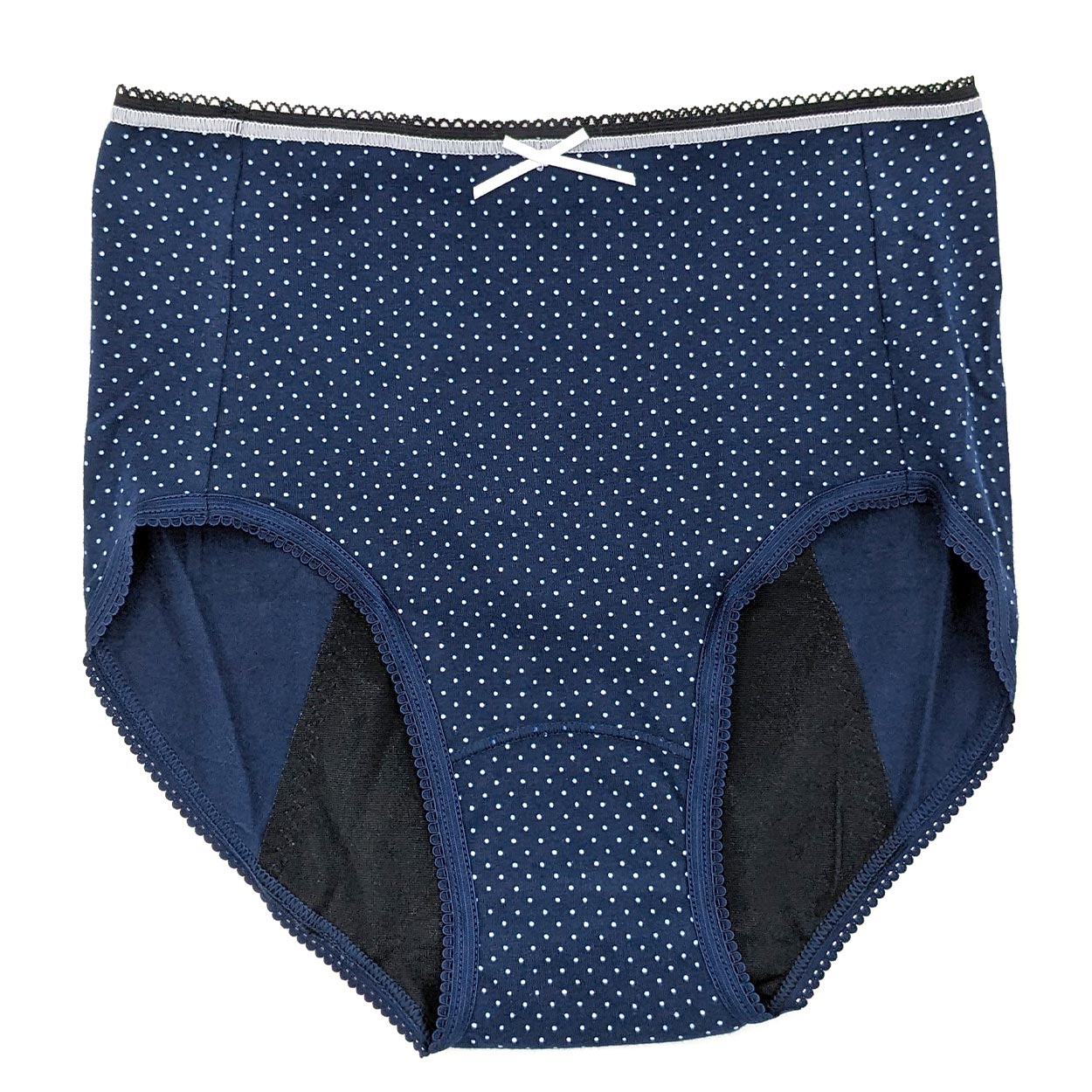 ドット柄をリボンをあしらった、かわいい夜用サニタリーショーツ。