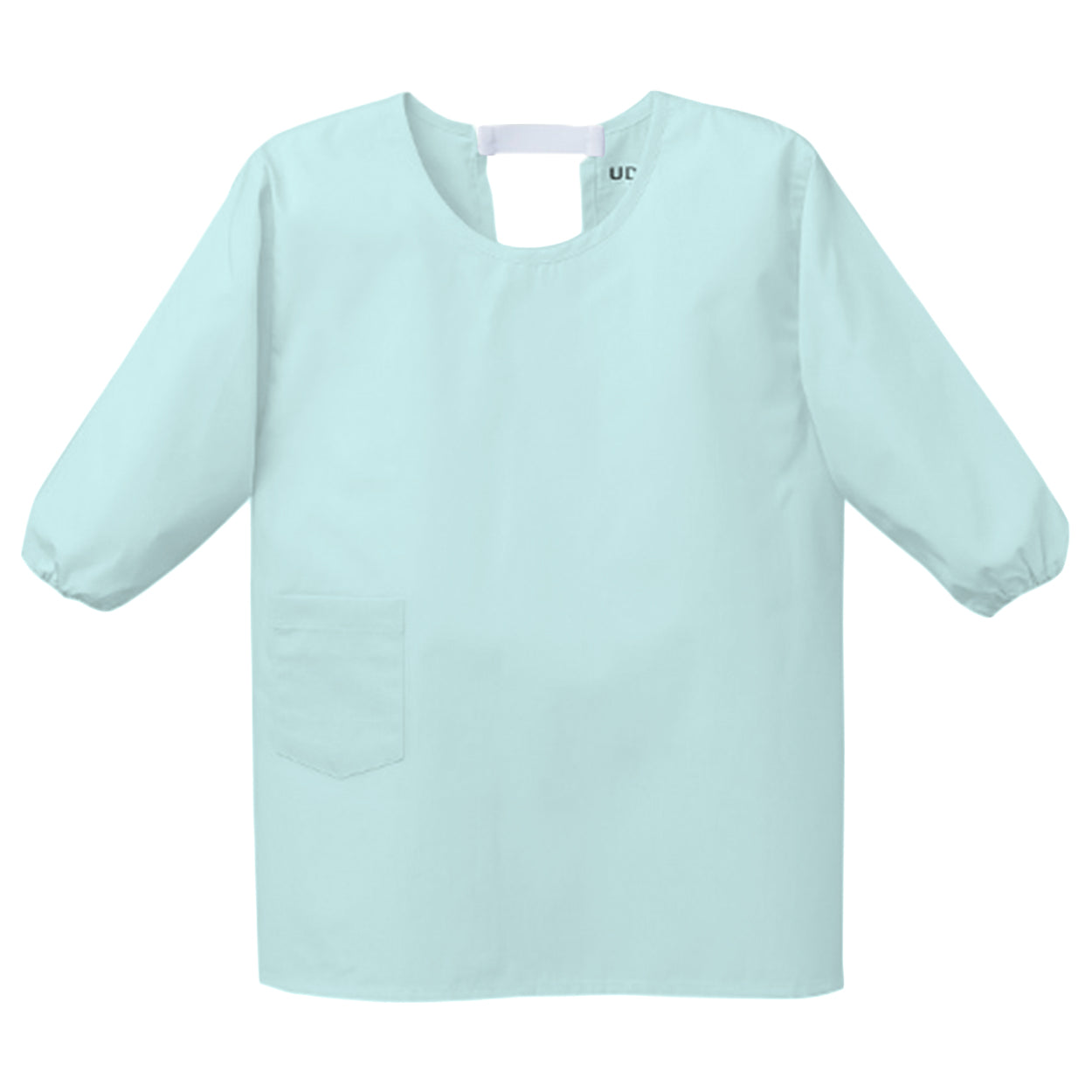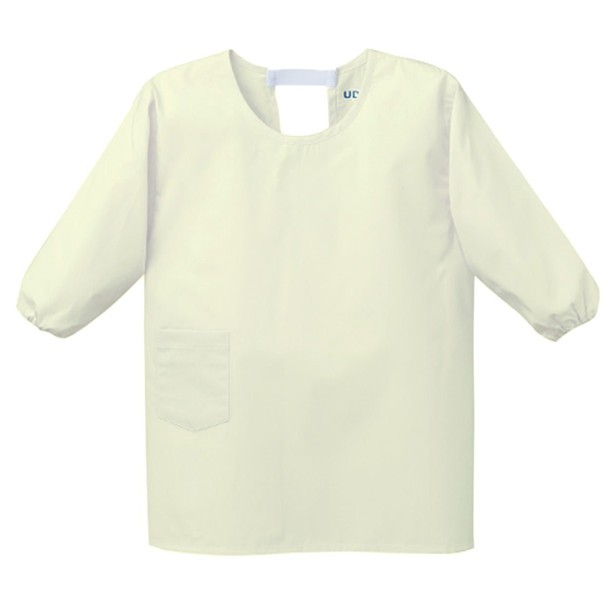 上からすっぽり被って着れる、かっぽう着タイプで長袖の給食着です。