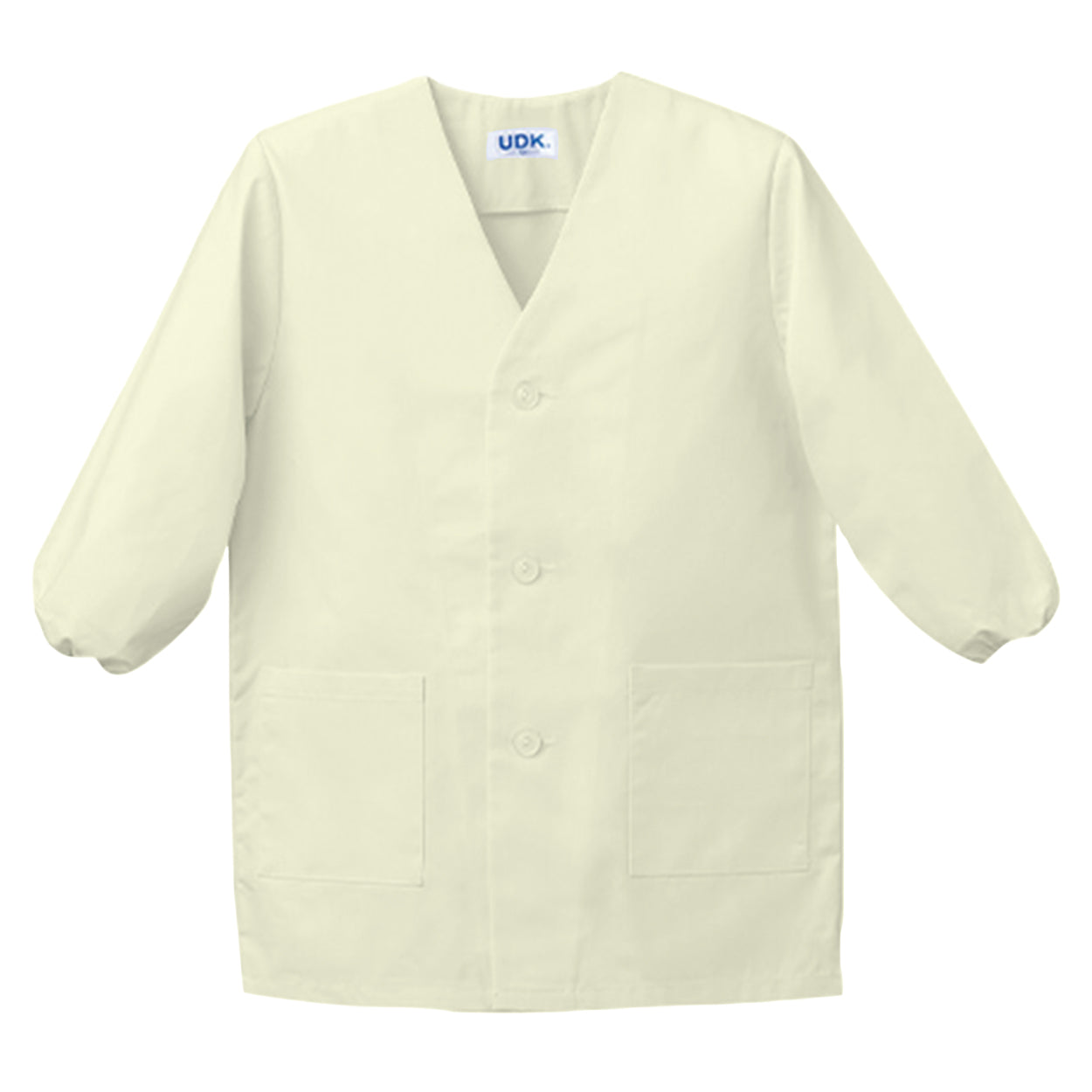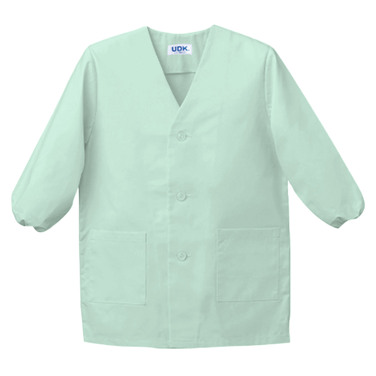 白衣 ボタン留め ゴム交換用の穴つき ポケット 長袖