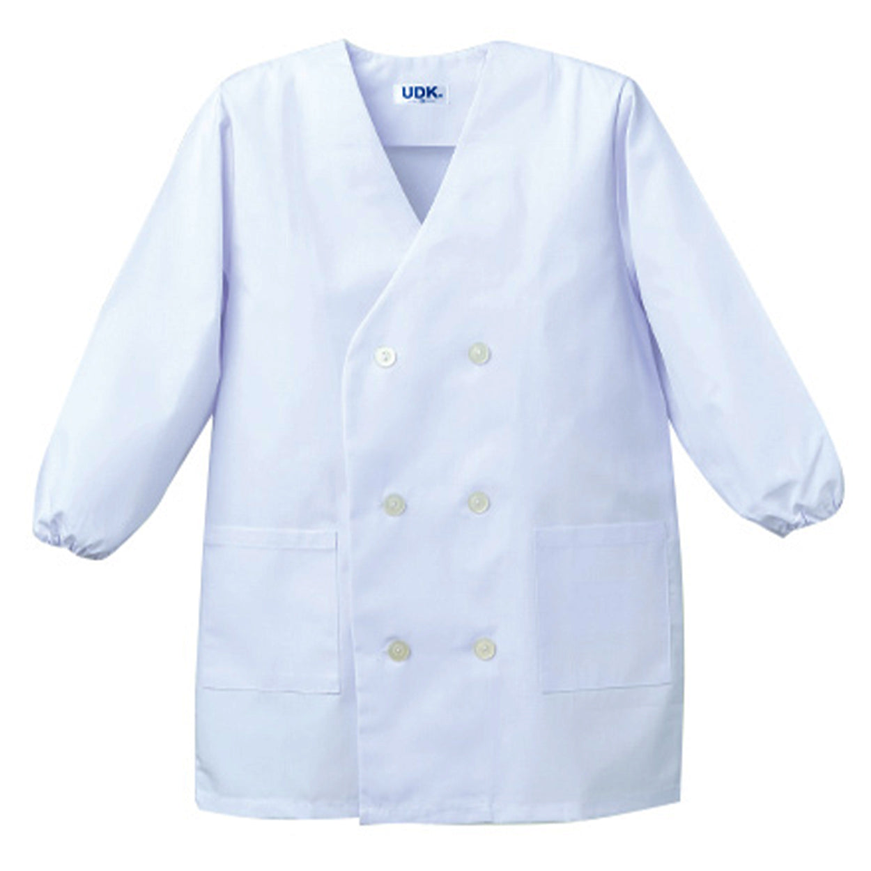 白衣 ボタン留め ダブルボタン ゴム交換用の穴つき ポケット 長袖