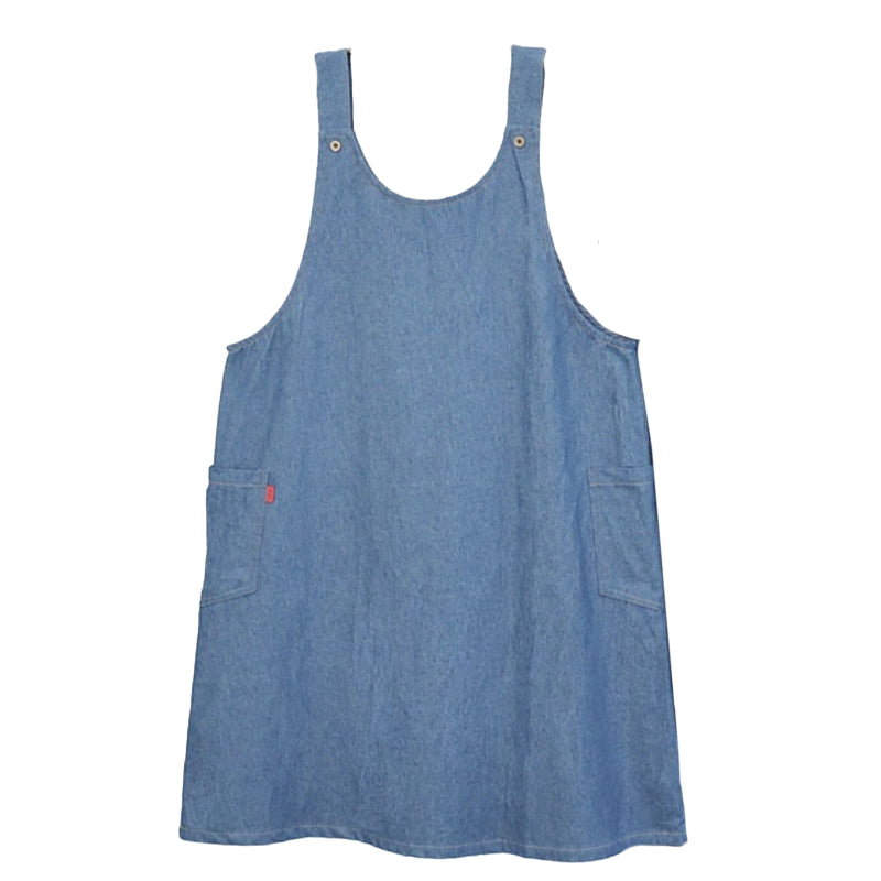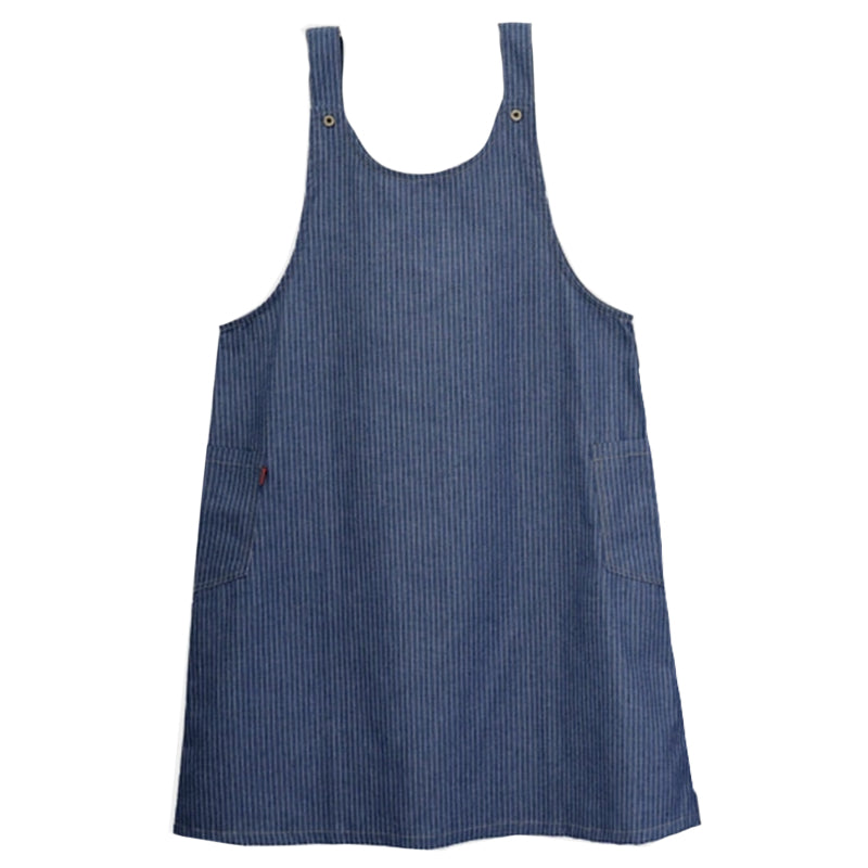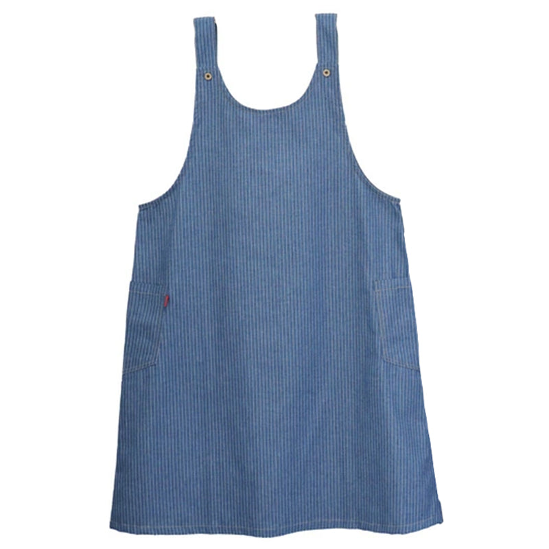 エプロン レディース デニム シンプル 無地 ストライプ 綿混 88cm 丈夫 キッチン 婦人 おしゃれ ガーデニング 保育士 (在庫限り)