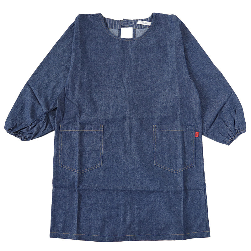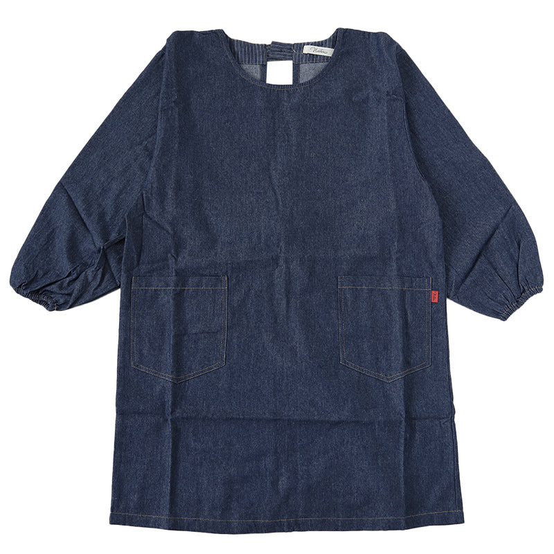 エプロン 割烹着 レディース デニム 長袖 シンプル 無地 ストライプ 綿混 90cm