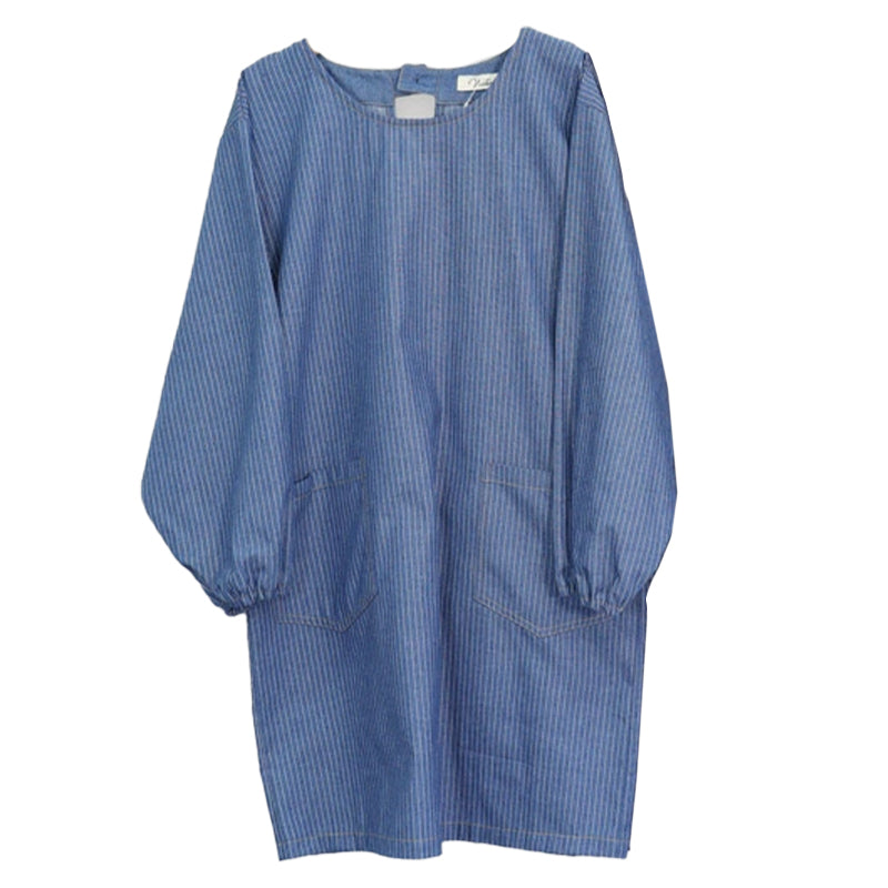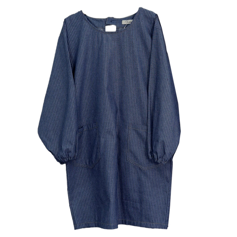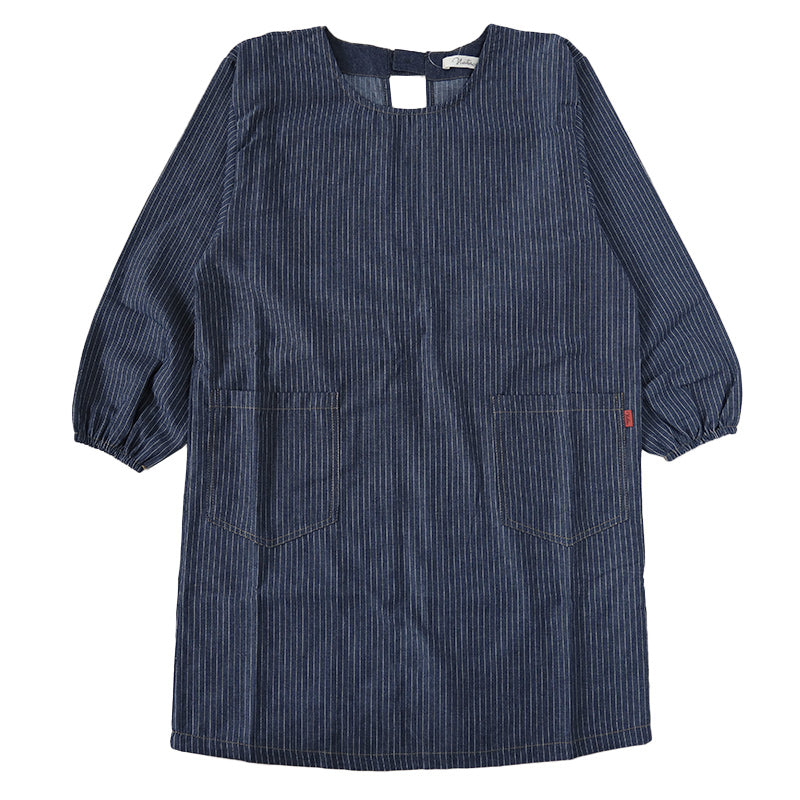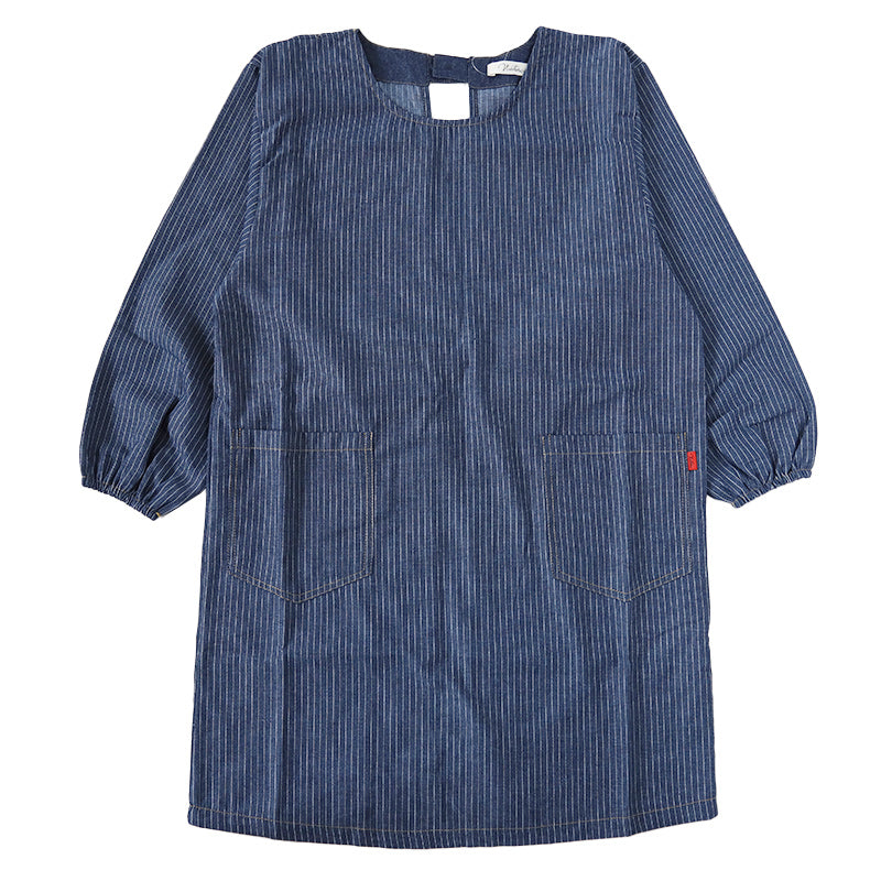 エプロン 割烹着 レディース デニム 長袖 シンプル 無地 ストライプ 綿混 90cm ストライプ 女性 シンプル 無地 可愛い かっぽう着 割烹 着 かっぽうぎ