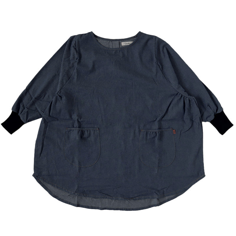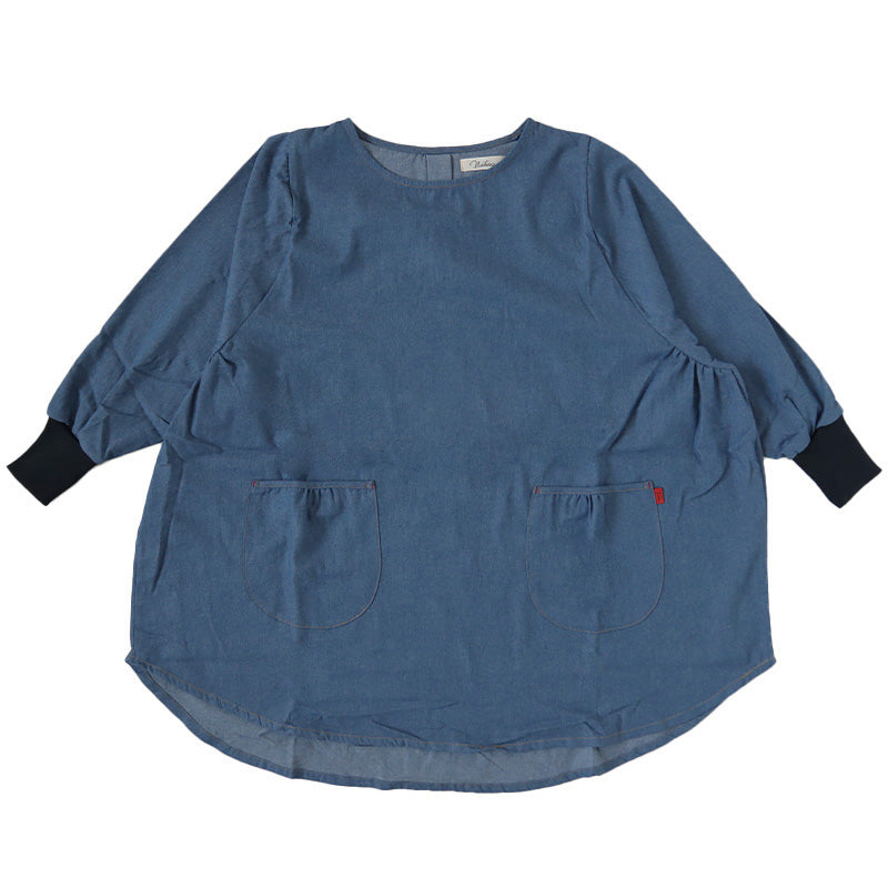 スモック 大人 かぶるだけ デニム 割烹着 エプロン 長袖 シンプル 無地 ストライプ 綿混 82cm