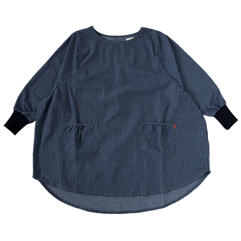 スモック 大人 かぶるだけ デニム 割烹着 エプロン 長袖 シンプル 無地 ストライプ 綿混 82cm スモック ワンピース ポケットあり 女性用 婦人用 家庭菜園 炊事 水屋 料理 キッチン用品 家事 母の日 お母さん 丈夫 キッチン (在庫限り)