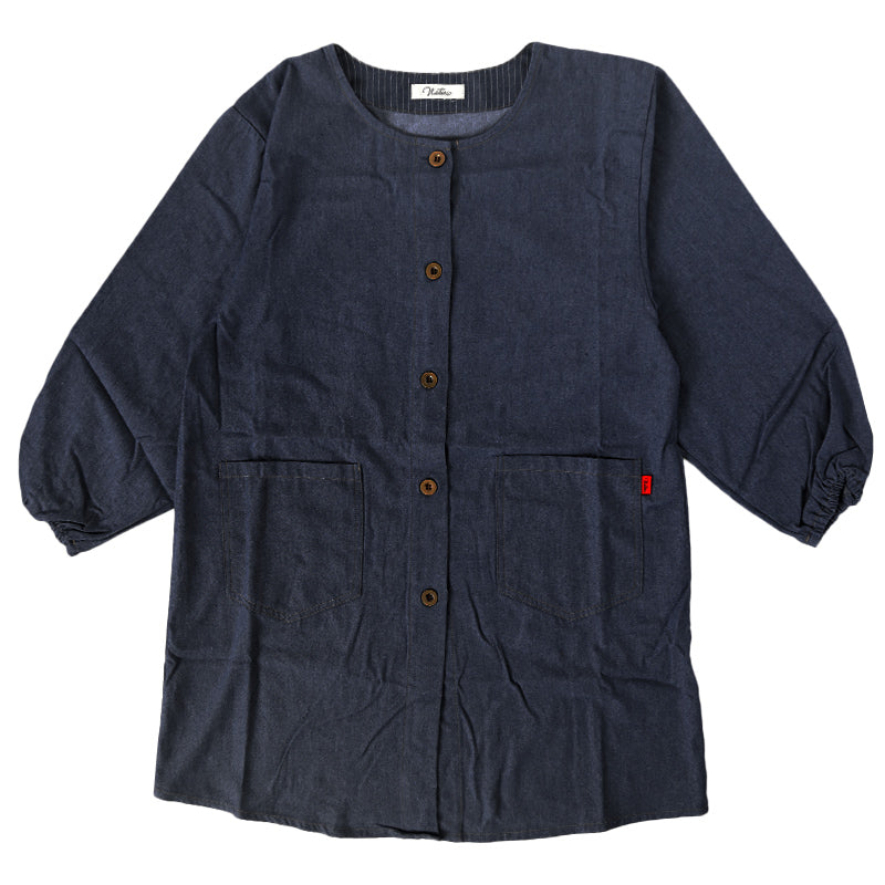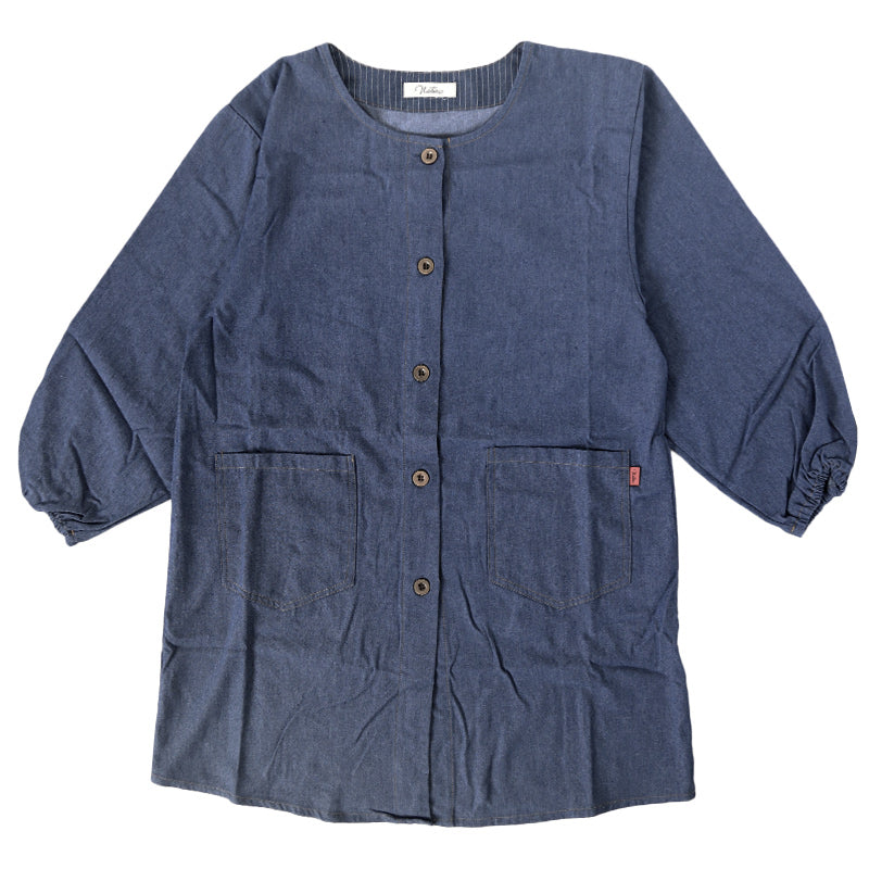 スモック 大人 前開き かぶるだけ デニム 割烹着 エプロン おしゃれ 羽織り カフェ 2way M-L