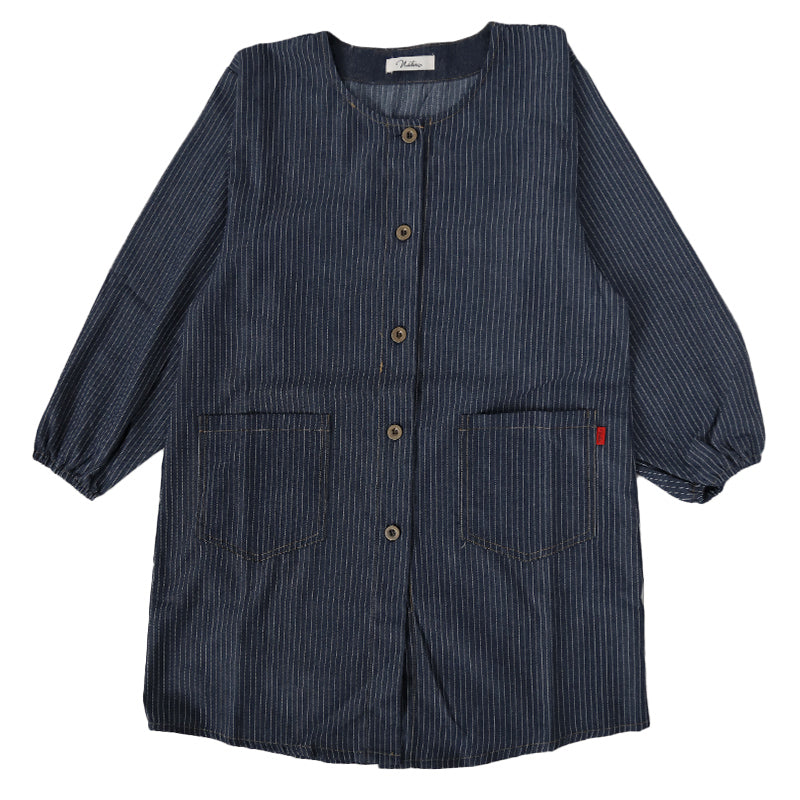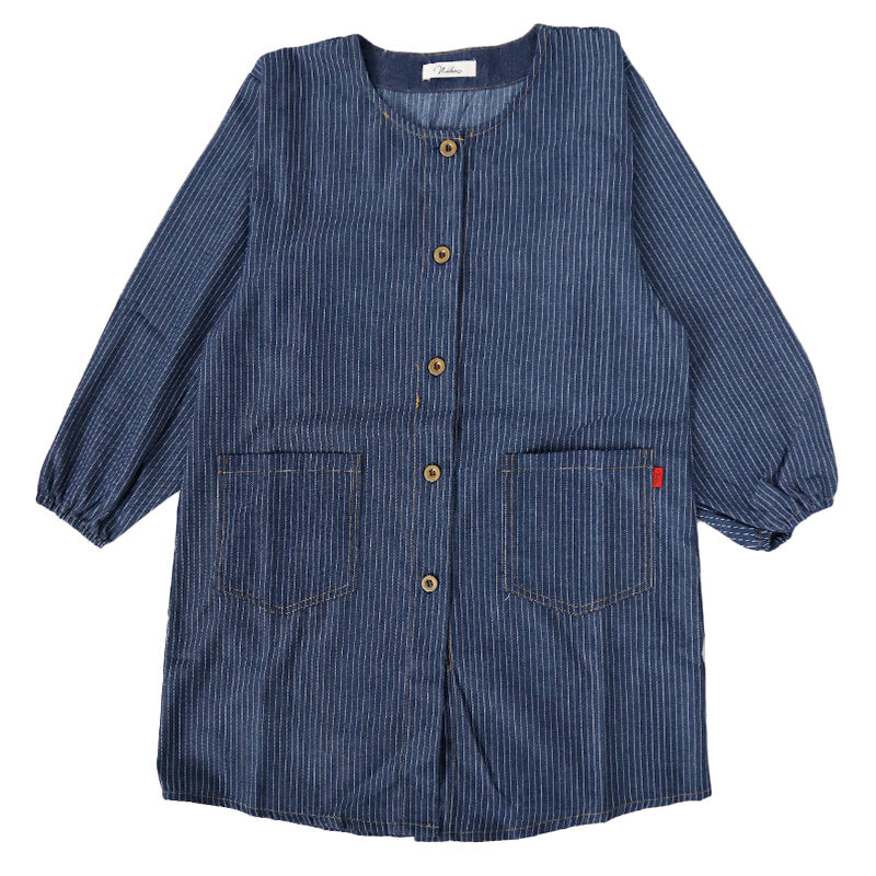 スモック 大人 前開き かぶるだけ デニム 割烹着 エプロン おしゃれ 羽織り カフェ 2way M-L ストライプ 大人用 レディース 女性 シンプル 無地 可愛い かっぽう着 割烹 着 かっぽうぎ