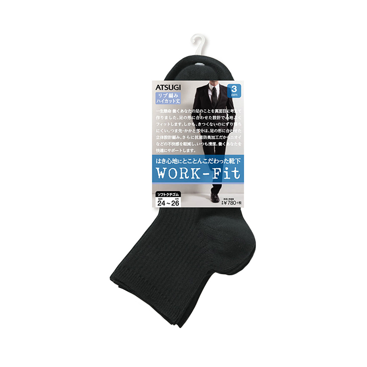 アツギ WORK-Fit 紳士 リブ編み サポーティ ハイカット丈ソックス 3足組 24-26cm・26-28cm