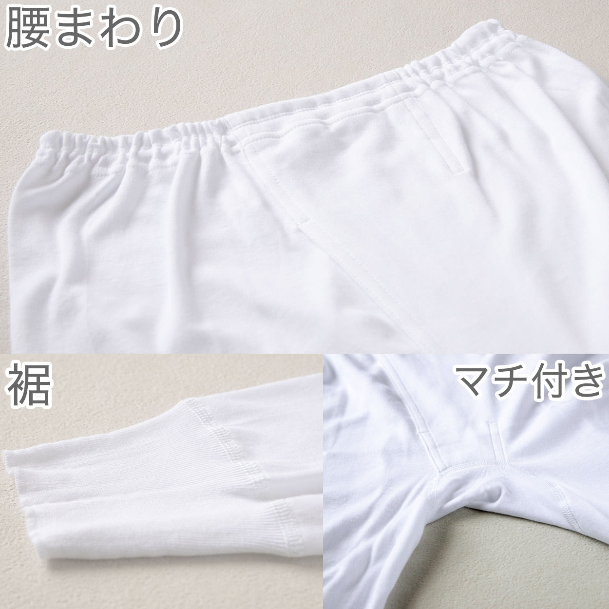 綿の繊維自体が汗などの水分を吸収して発熱することで、冬の防寒に役立つ肌着のボトムスです。