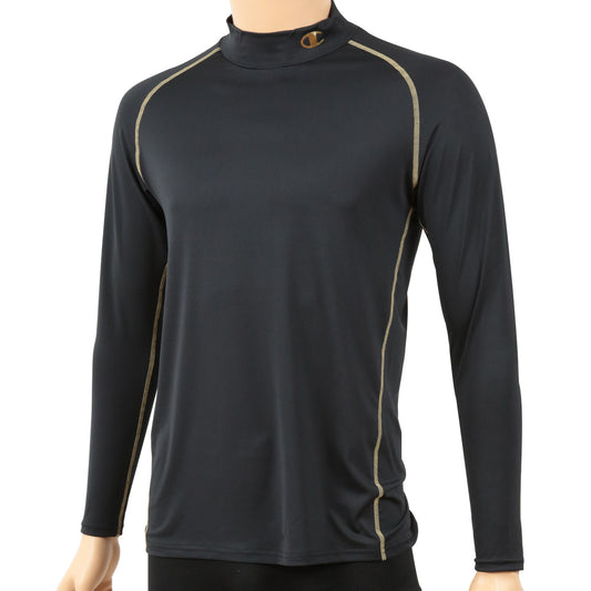 スポーツウェア メンズ チャンピオン 長袖 上着 黒 ブラック トレーニング 速乾 モックネック ハイネック トップス おしゃれ M~LL (champion キャンプ 運動 野球 サッカー 部活動 ジム ルームウェア Tシャツ M L LL)
