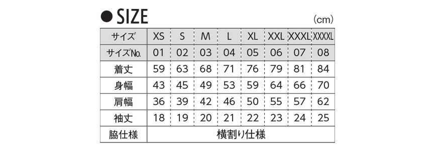 - XS(着丈:59cm/着幅:43cm/肩幅:36cm/袖丈:18cm)