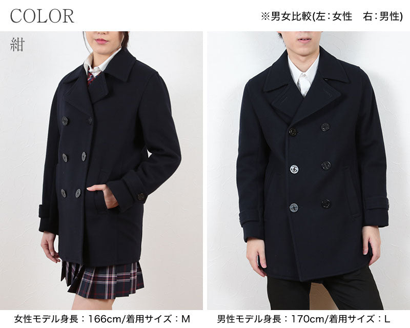 男女兼用Pコート S~3L (you:th ピーコート スクールコート ウール混 保温 防寒 女子 男子 通学 中学生 高校生) (送料無料) (取寄せ)