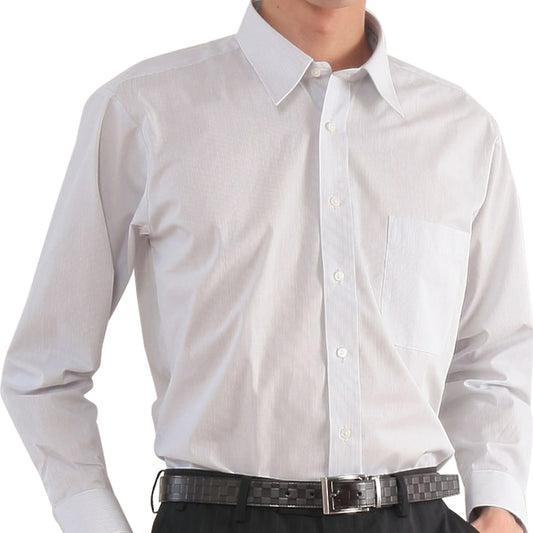 カッターシャツ メンズ 長袖 形態安定 (グレー) 28サイズ展開 (ドレスシャツ ストライプ柄 ワイシャツ ノーアイロン yシャツ シャツ 紳士) (在庫限り)