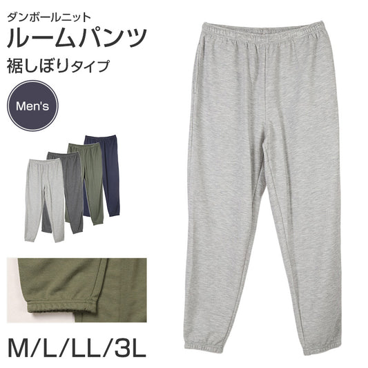 ルームパンツ メンズ パンツ ルームウェア 裾しぼり 部屋着 パジャマ 保温 M L LL 3L ウエストゴム 紐調整可能 ポケット付き 無地 シンプル リラックスパンツ イージーパンツ 大きいサイズ 春 夏 秋 冬 オールシーズン 軽量 柔らか 快適 スウェット ダンボールニット