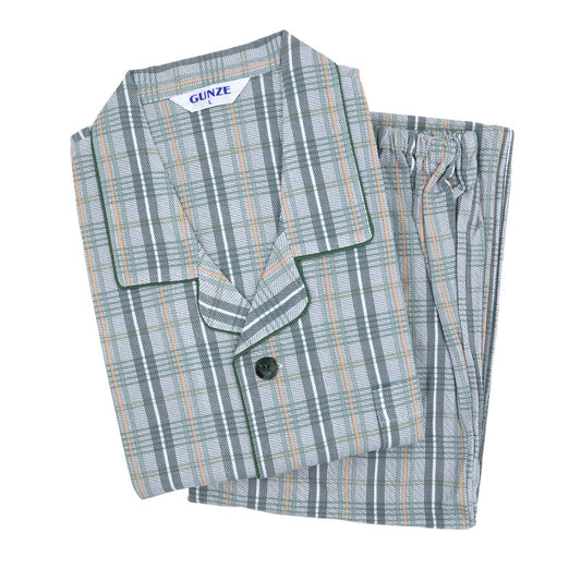 グンゼ パジャマ メンズ 綿100 日本製 S M L LL GUNZE シニア 寝巻 寝間着 部屋着 前開き ホームウェア ルームウェア チェック ストライプ 男性 紳士 敬老の日 ギフト 父の日 (送料無料)