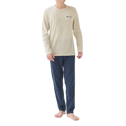 チャンピオン メンズ 長袖 パジャマ 上下セット シンプル M L LL 3L Champion 春夏 秋 薄手 部屋着 ホームウェア ルームウェア セットアップ ロゴ入り ロゴ 父の日 グンゼ gunze ブルー系 青 紺 ブラック系 黒 グレー系 灰色 シンプル リラックス おしゃれ (送料無料)