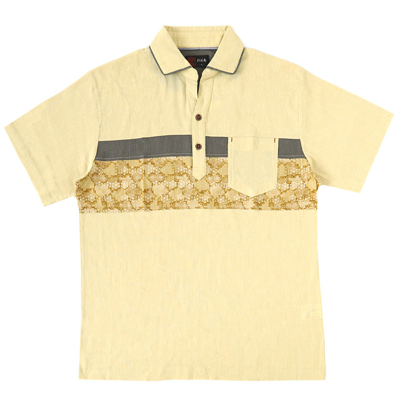 襟付き シャツ 和風 メンズ 夏 大きいサイズ 和柄 M~4L クレープ生地 おしゃれ 涼しい 和服 和装 パジャマ 寝巻き 部屋着 ルームウェア アウター tシャツ 半袖 トップス 父の日 ギフト プレゼント 30代 40代 50代 エンジ レッド 赤 イエロー M L LL 3L 4L (在庫限り)