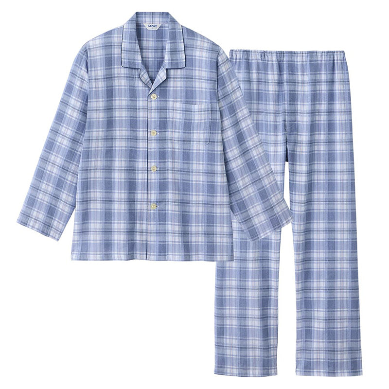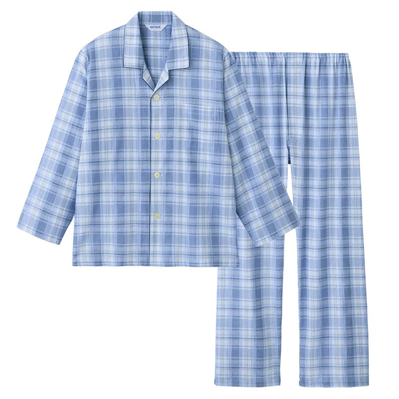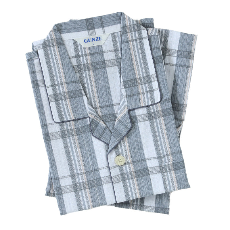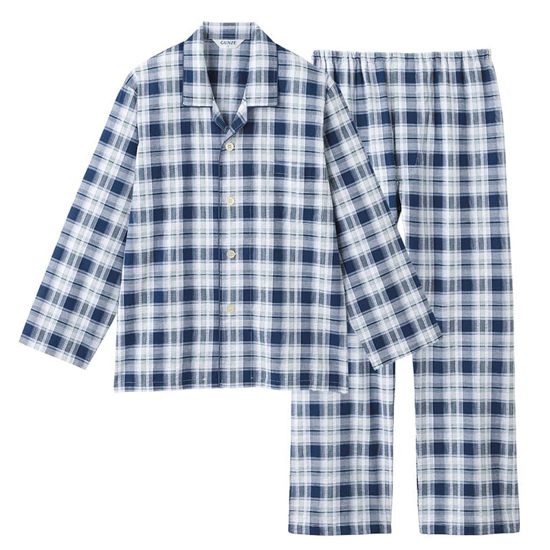 【メンズ】/【パジャマ・ルームウェア】/【長袖】/【S】/【M】/【L】/【LL】/【3L】/【GUNZE[グンゼ]】/【グレー系】/【グリーン系】/【ネイビー系】/【ブルー系】/【柄】/【綿100%】/【夏物】/【吸汗速乾】/【通気性抜群】/【肌にやさしい】/【やわらかい】