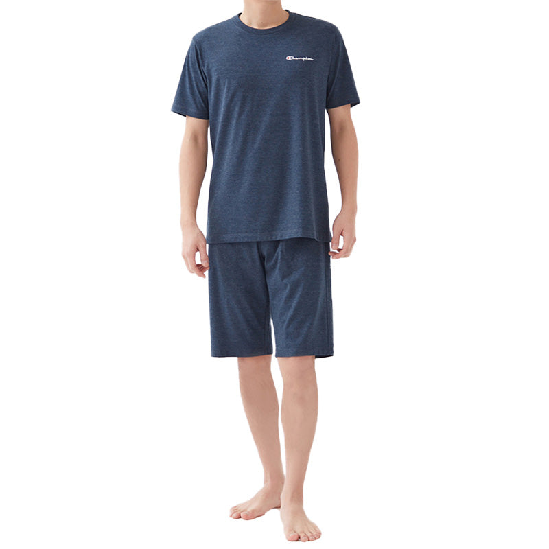 チャンピオン パジャマ 半袖 半ズボン メンズ 上下セット M~LL Champion 春 夏 部屋着 ホームウェア ルームウェア セットアップ ロゴ入り ロゴ 夏物 上下色違い 父の日 (送料無料)