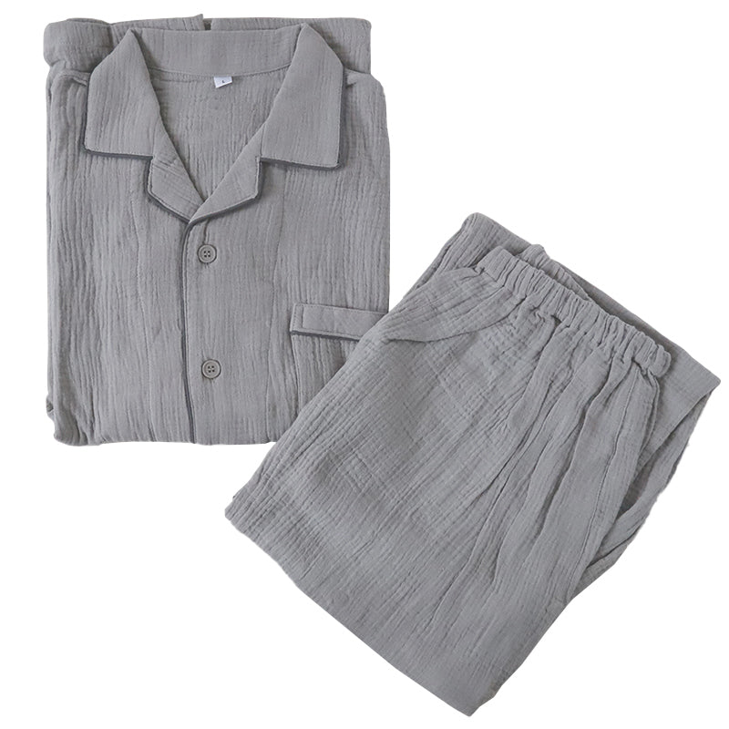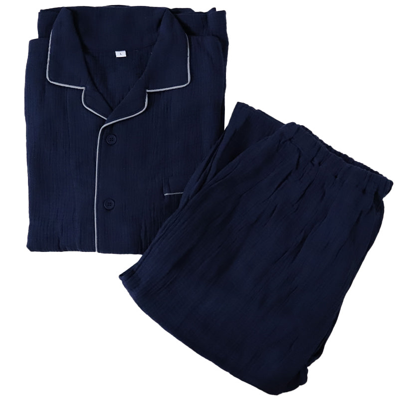 ダブルガーゼ生地でサラッとした着心地の 綿100% メンズ パジャマ です。