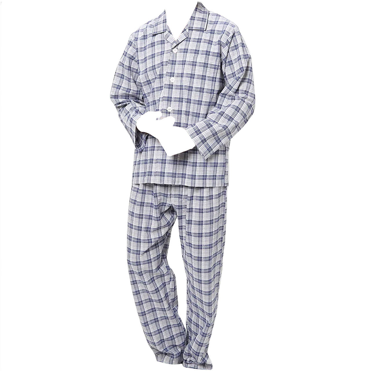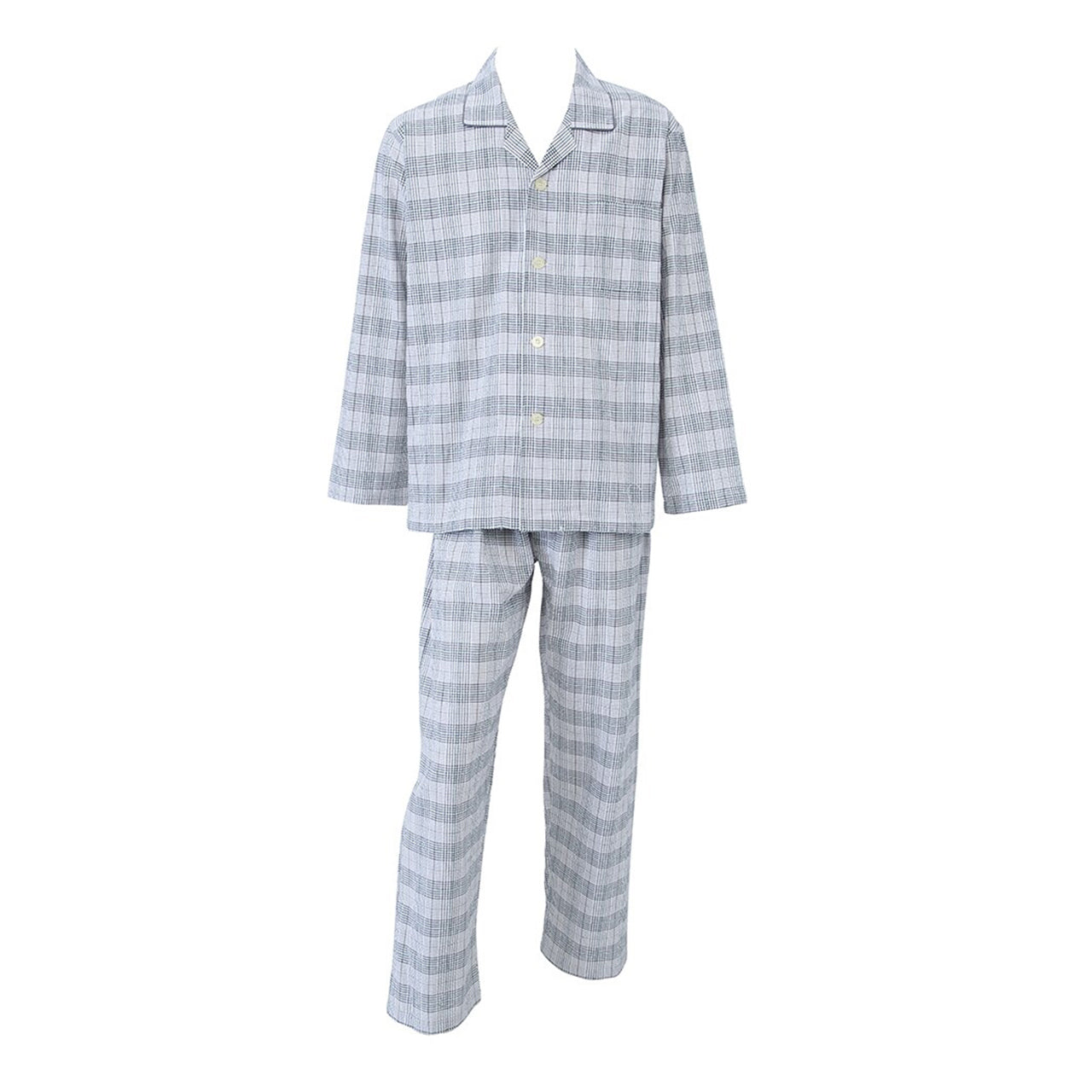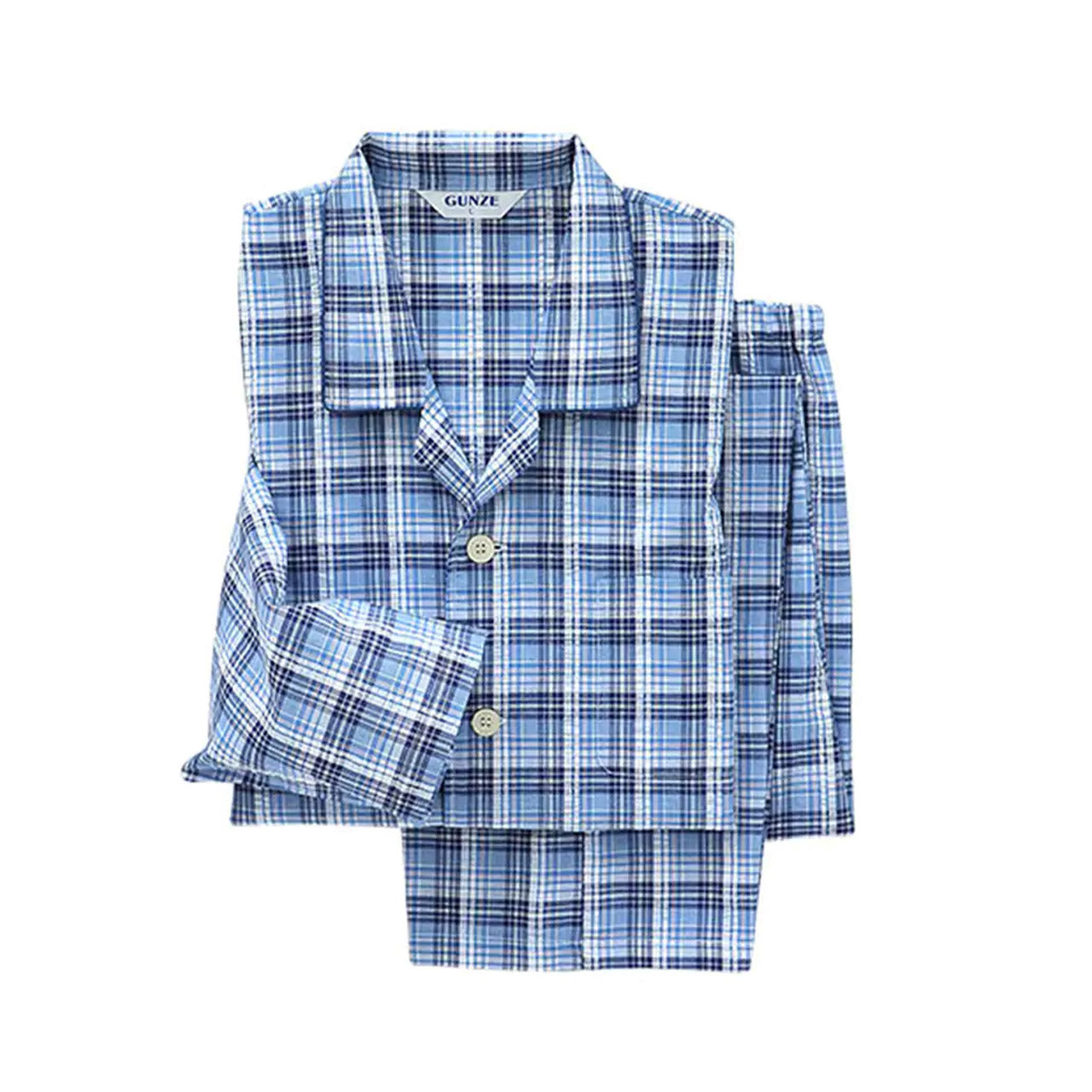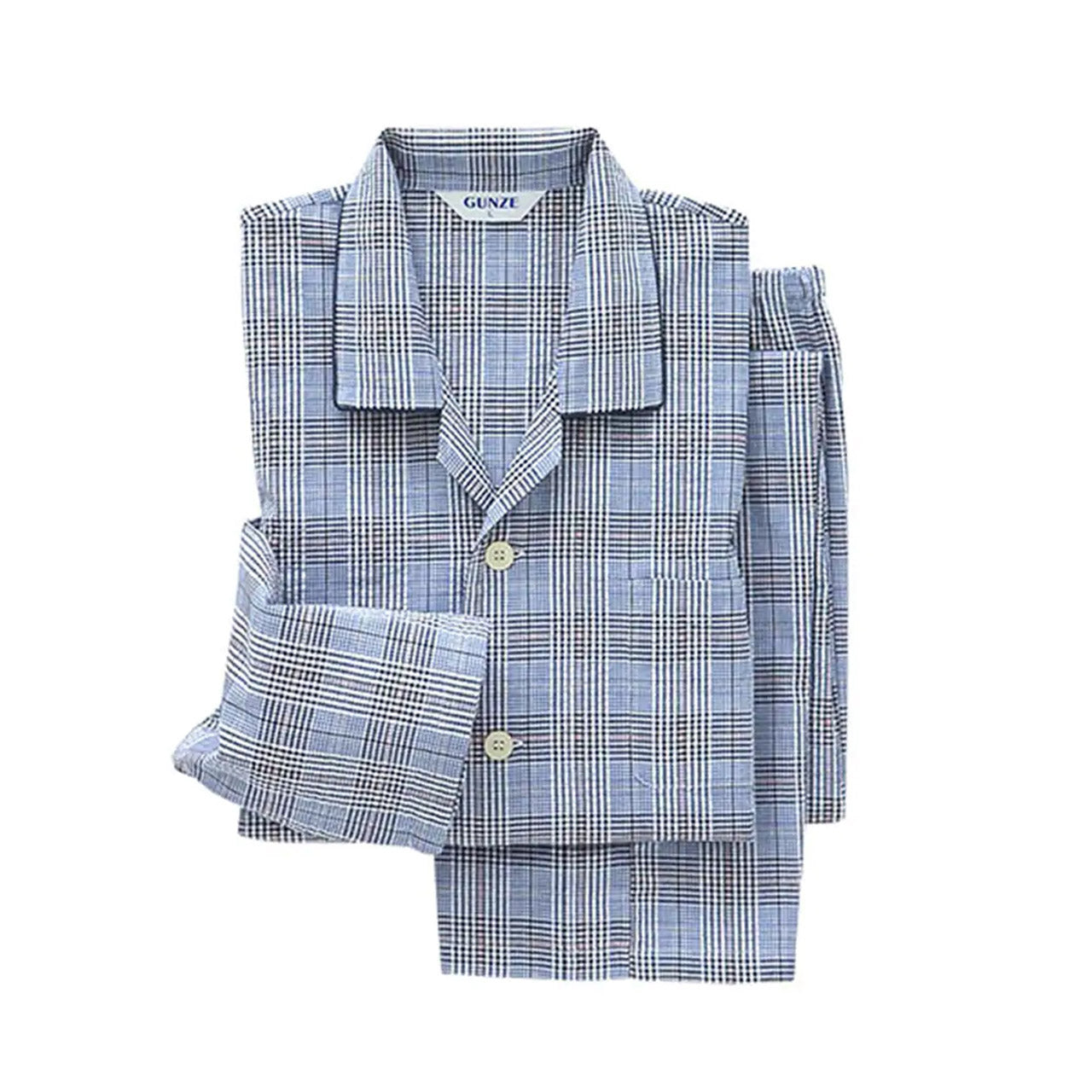 グンゼ パジャマ メンズ 長袖 長ズボン 前開き 綿100% S~LL (小さいサイズ 大きいサイズ S M L LL 消臭 防臭 寝巻 寝間着 チェック柄) (在庫限り)